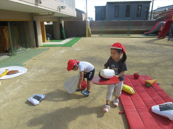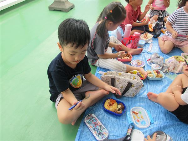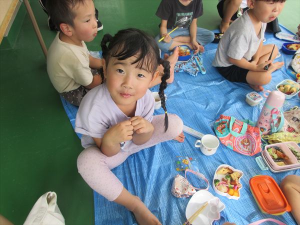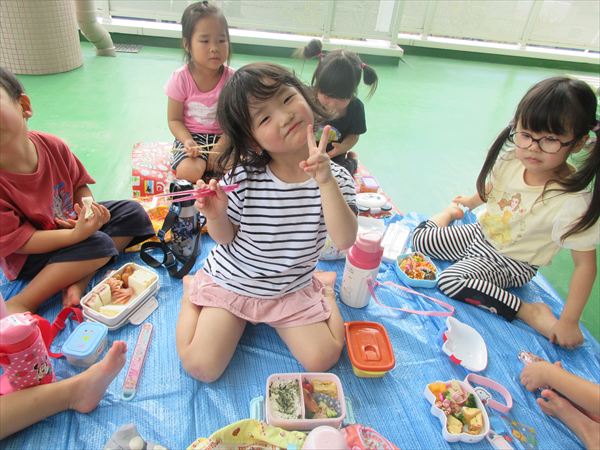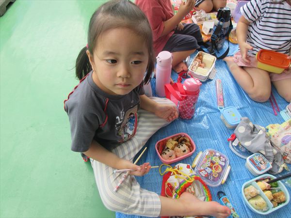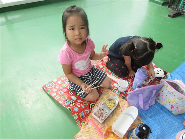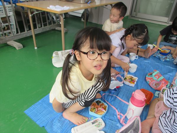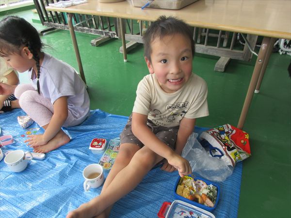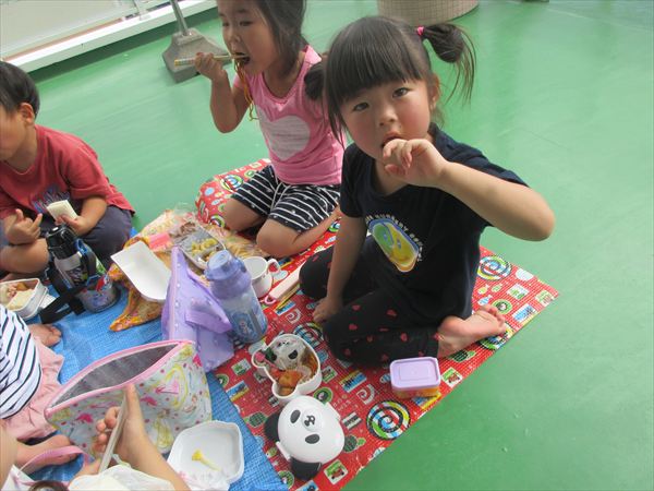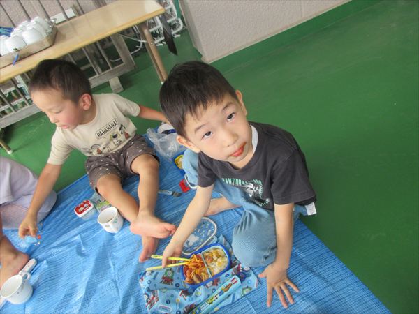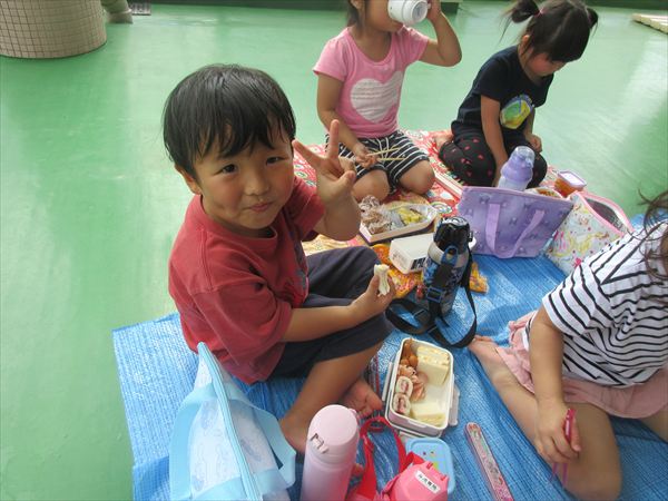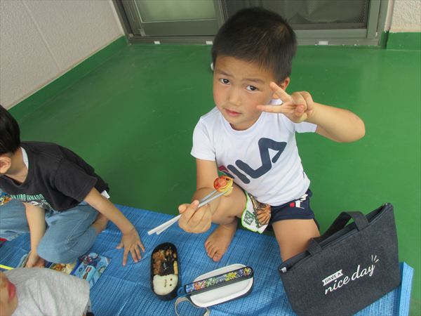 お弁当日には、お家の人が作ってくれたお弁当を喜んで食べる様子が見られました!テラスで秋の風に吹かれながら遠足気分を味わうことが出来ました!