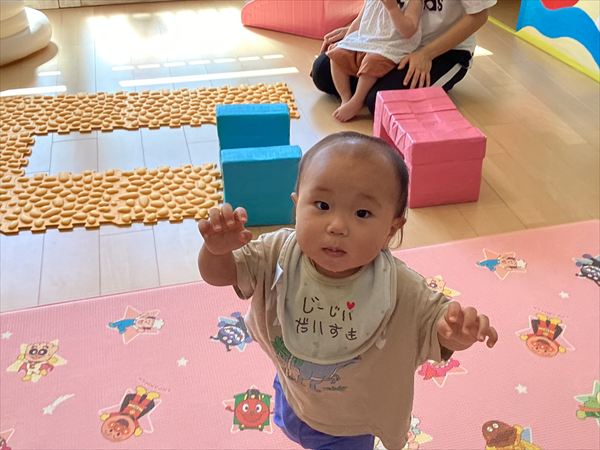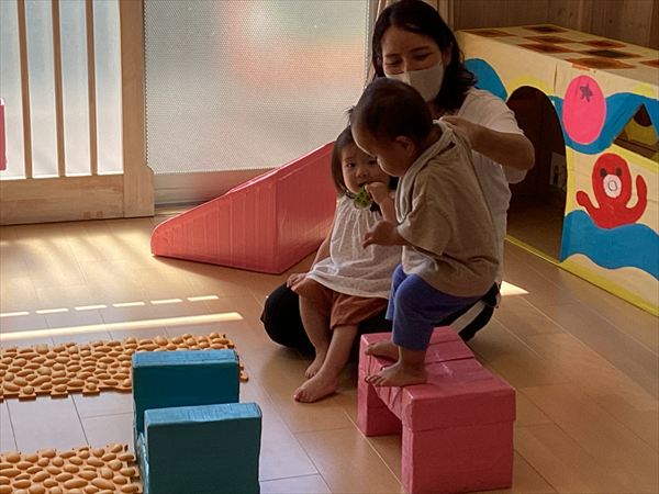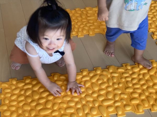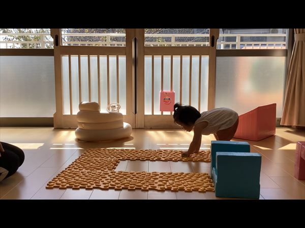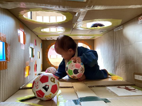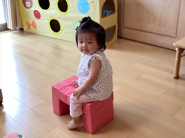遊びの幅が広がり台に乗ってみたり、トンネルを倒してみて丸い穴の中にボールを転がして入れてボーリングのように遊んだりして楽しんでいます。