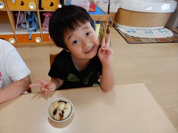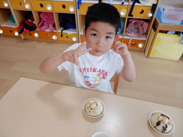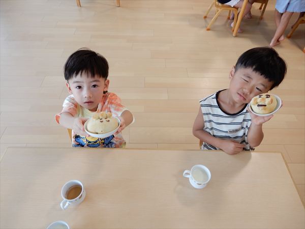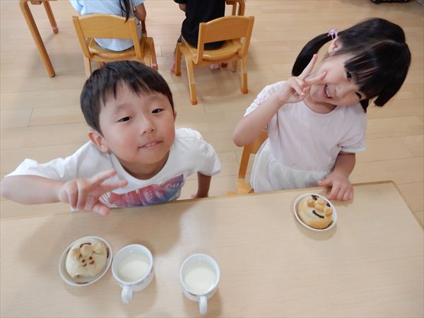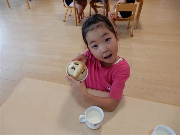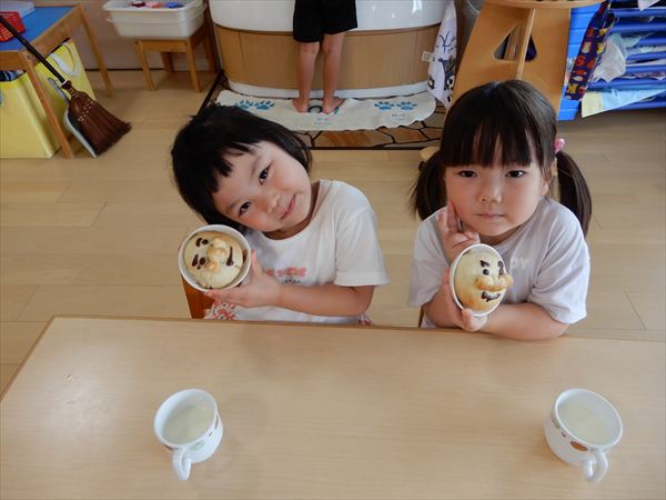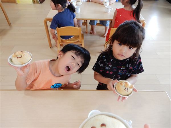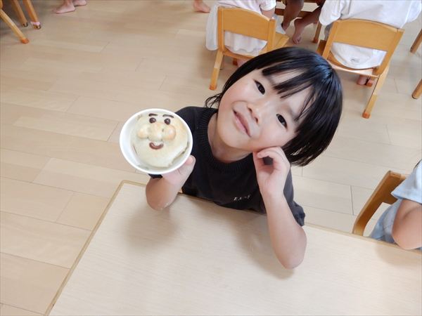 9月のお誕生日会のおやつは「アンパンマン」のパンでした!お顔を見せ合いっこして嬉しそうに食べていましたよ♪