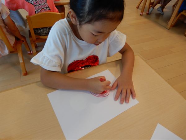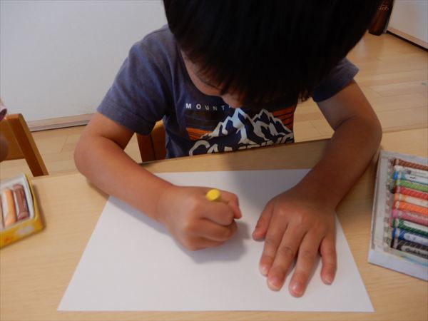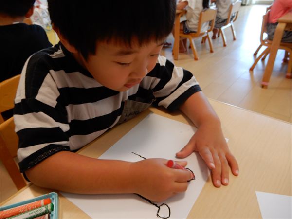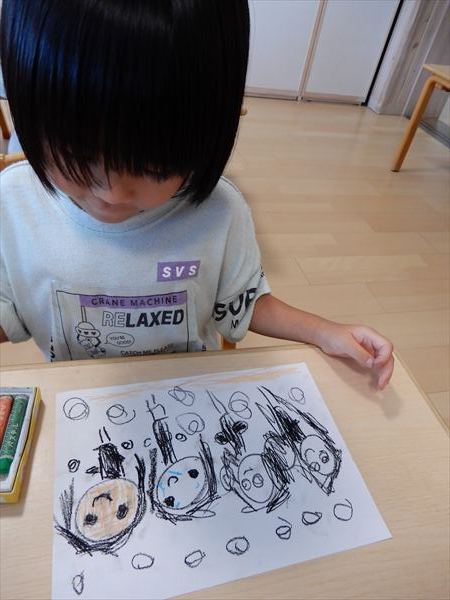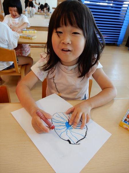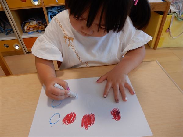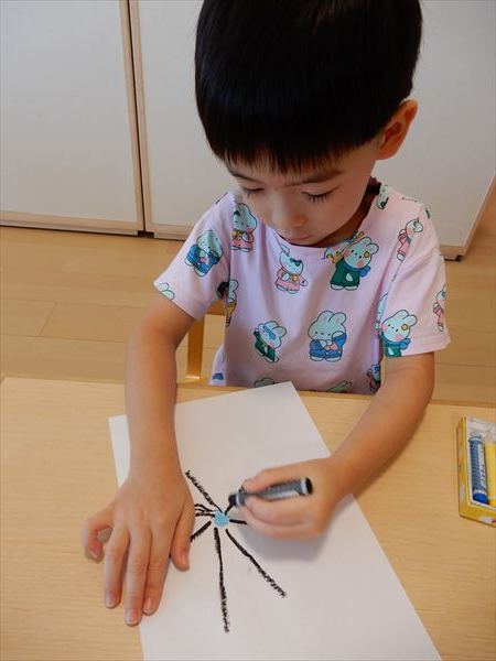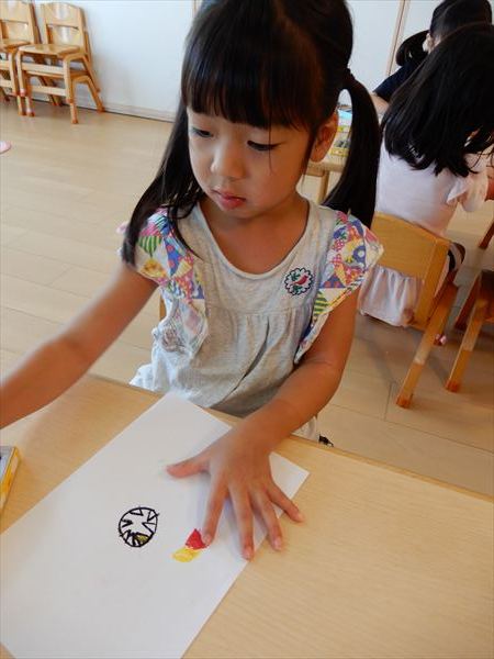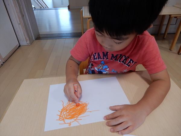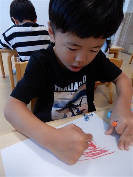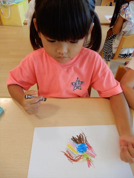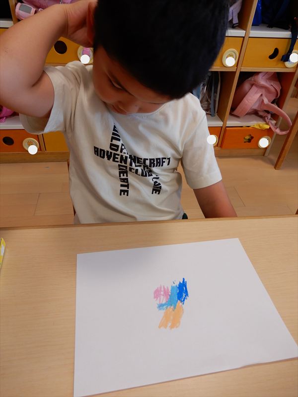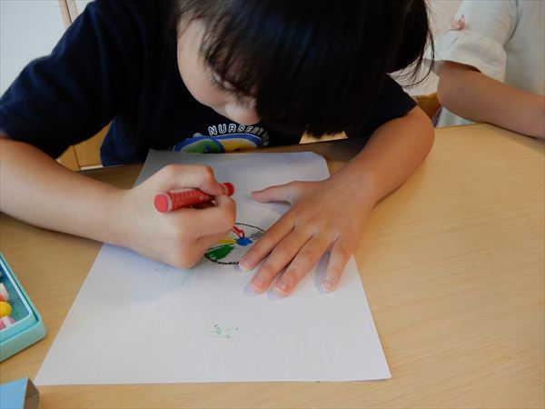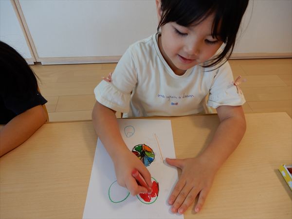 運動会に向けて万国旗を描きました!パラバルーンや大玉転がしなど行っていることをイメージしながら上手に描いていましたよ!