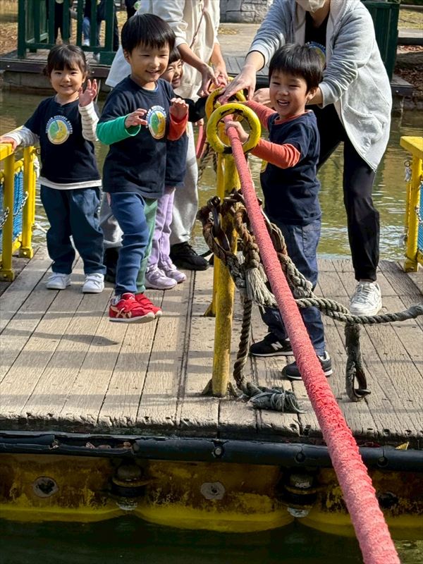 初めてお弁当を持ってお出かけをしました!広い公園、大きな遊具に大興奮でたくさん遊びました!筏にも乗って普段できない体験をたくさんして嬉しそうでした☆帰りは疲れてバスの中でぐっすり眠っていたほしぐみさんでした!!