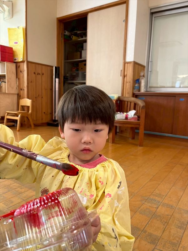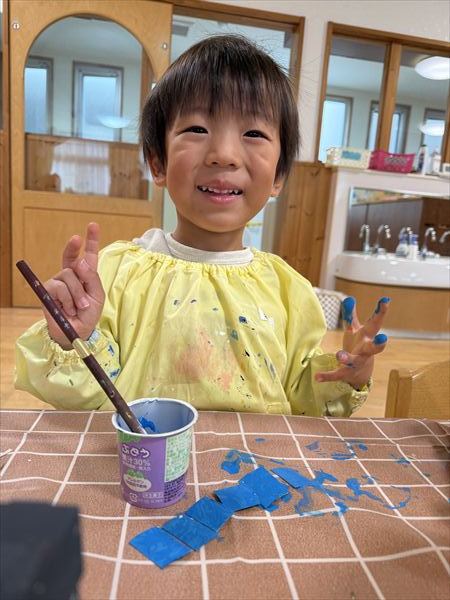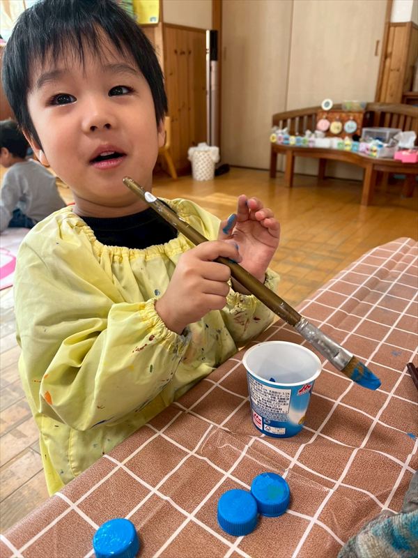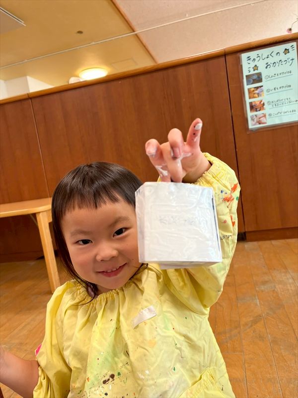 制作展に向けて「乗り物」をテーマに制作を進めました!自分の作りたい乗り物を決めて、イメージに沿って廃材を選びました!絵の具で色を塗ったり組み立てたりして、作りたい物をどんどん形にして制作力が上がってきたほしぐみさんです☆