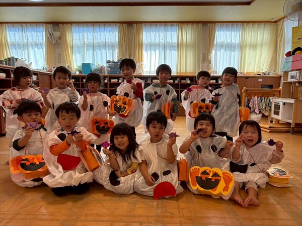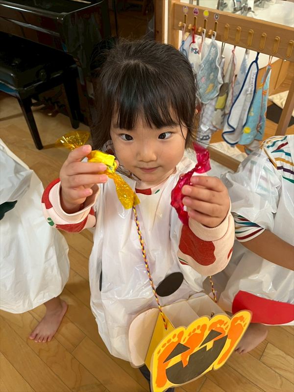 ハッピーハロウィン♪皆で仮装して園内探索をしました!魔女からのお手紙が届き素敵なプレゼントをゲットすることができましたよ!たくさん楽しんだハロウィンでした!