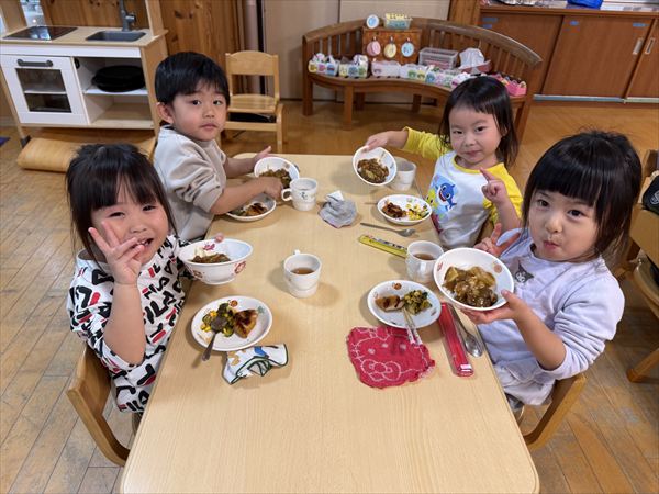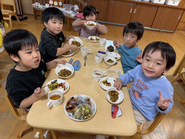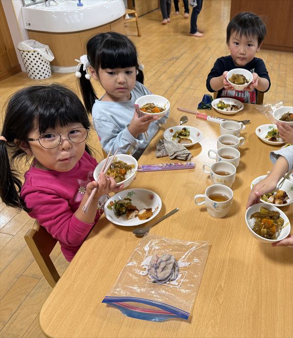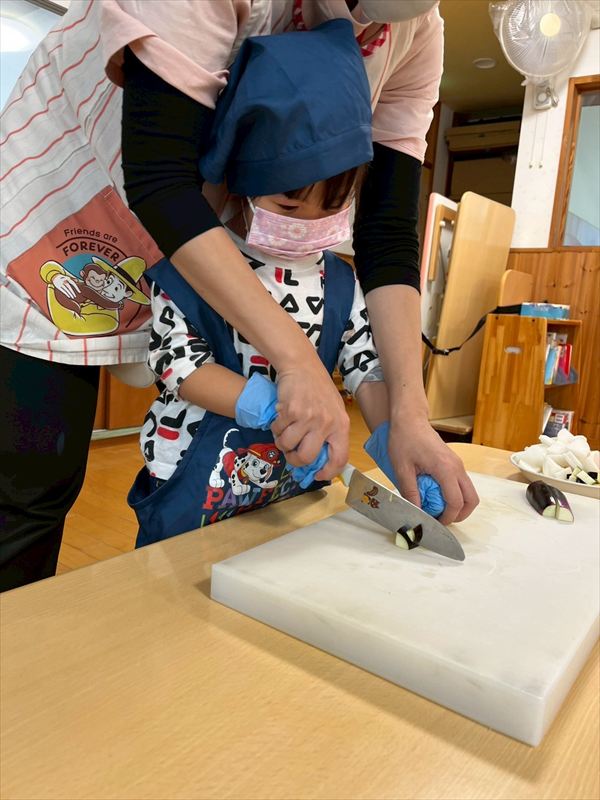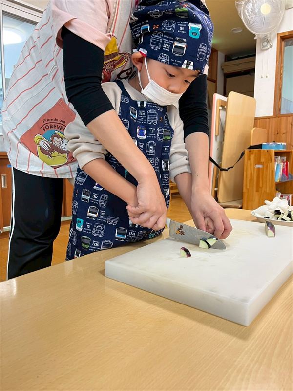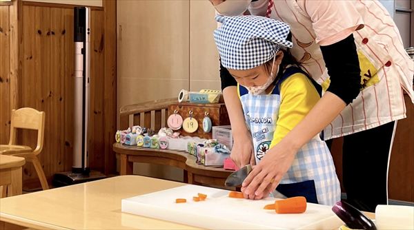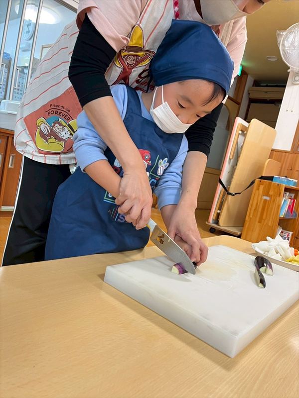 みんなが持ってきた野菜でカレーを作りをしました!初めての包丁にドキドキしていましたが上手に切れました!完成したカレーはいつも以上に美味しく感じました♪