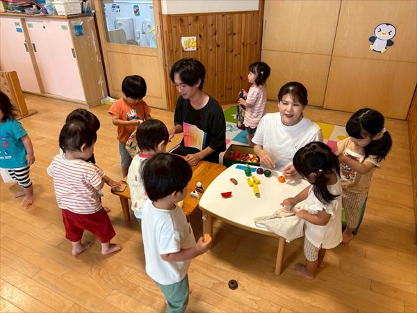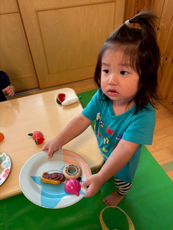 カラーボール遊びやお買い物ごっこ、制作遊びにも興味を持って楽しんでいました♪簡単なやりとりをしながら遊んでいて微笑ましかったです(*^^*)