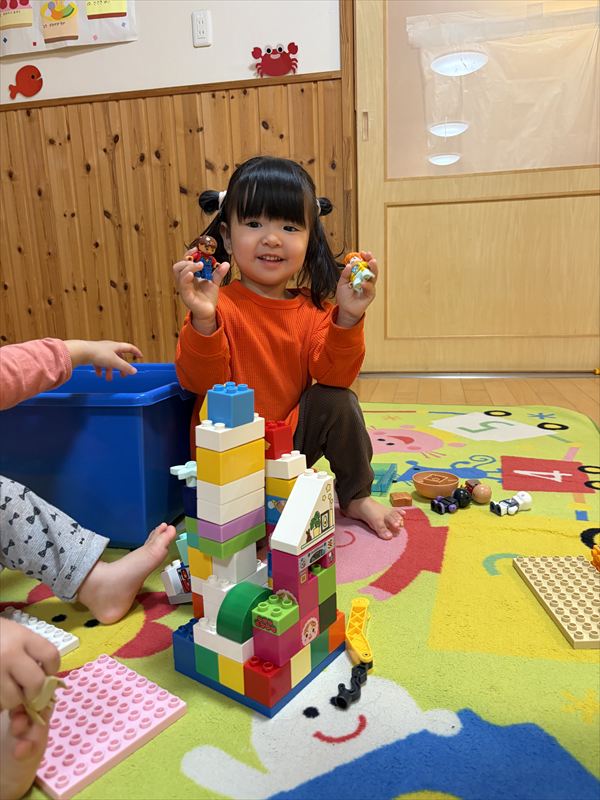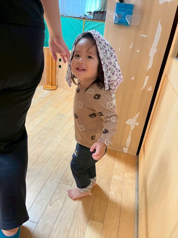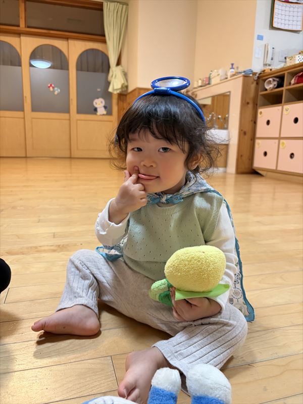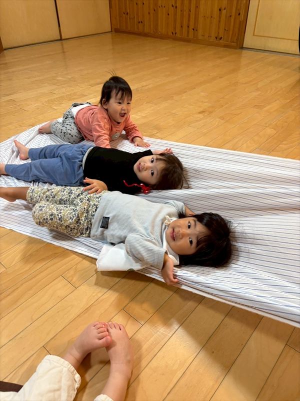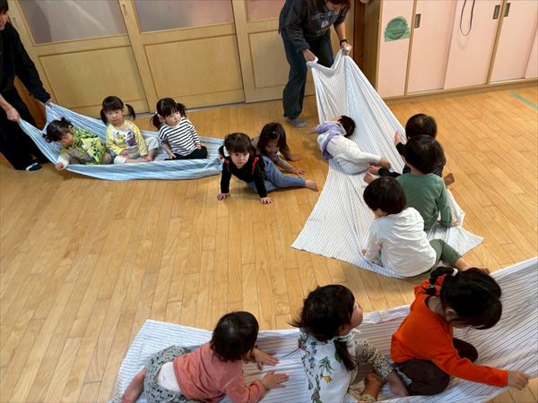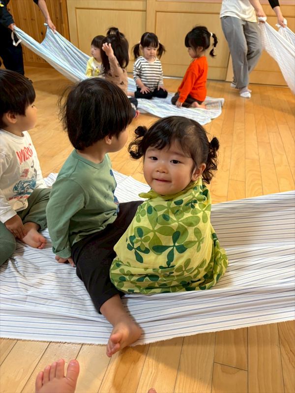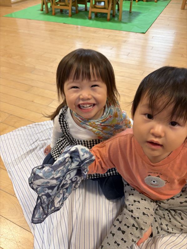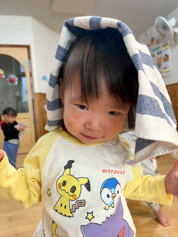 マントをつけてアンパンマンに変身したり、大きな布の列車に乗ったりして楽しみました!