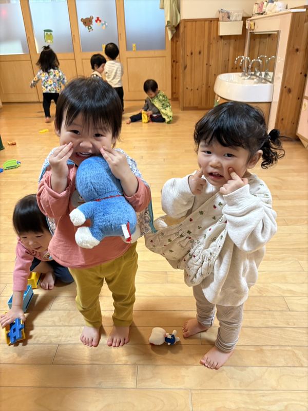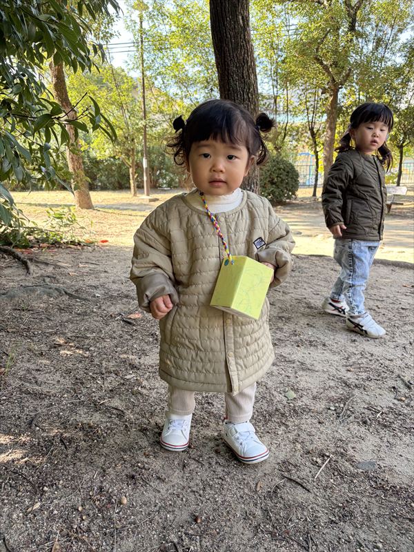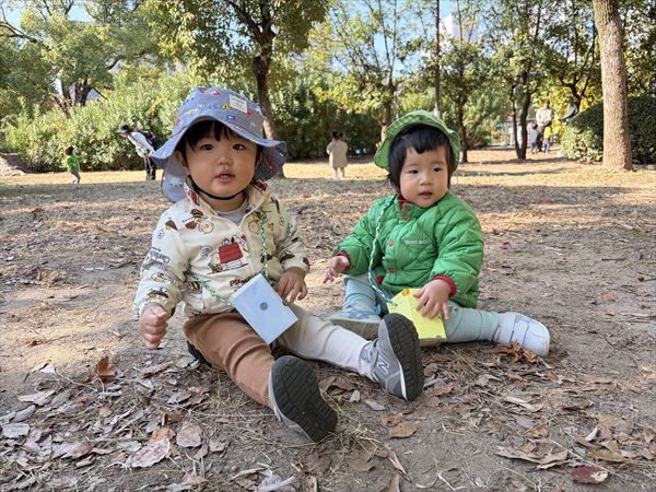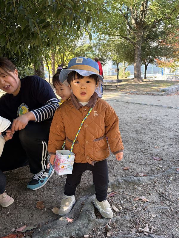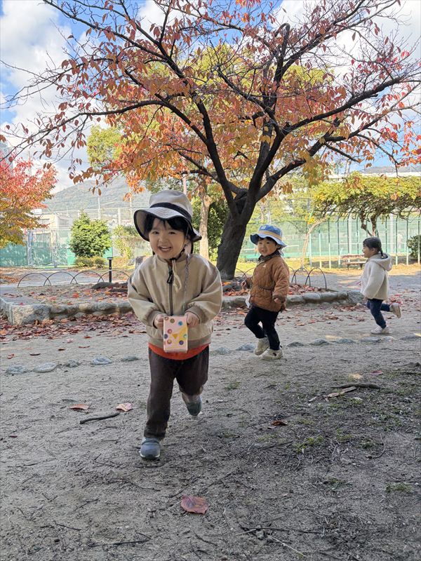 戸外遊びが大好きな子どもたち!寒さなんてへっちゃらでみんなで走ったり、葉っぱを見つけたりしてたくさん遊びました☆