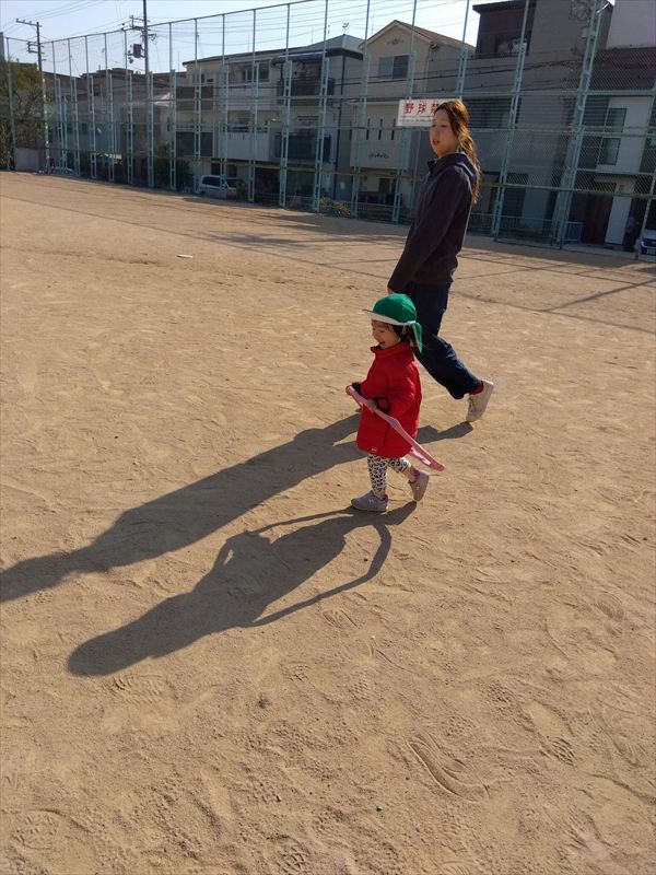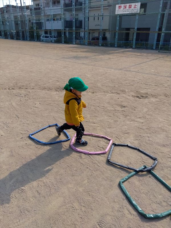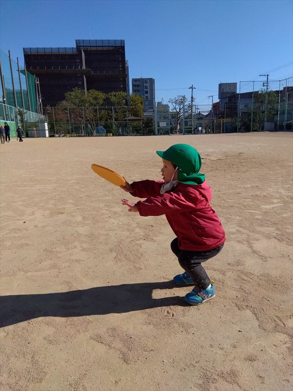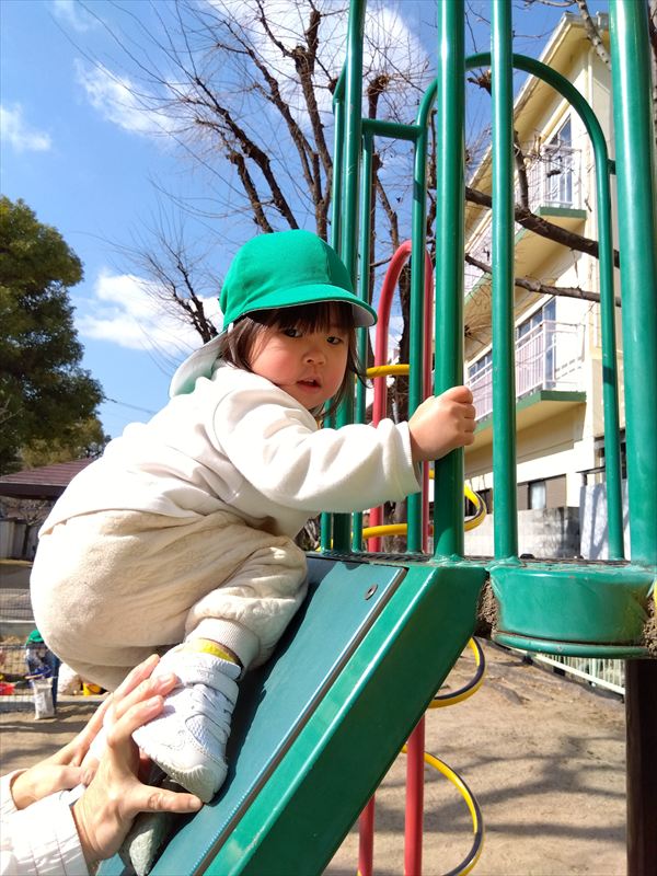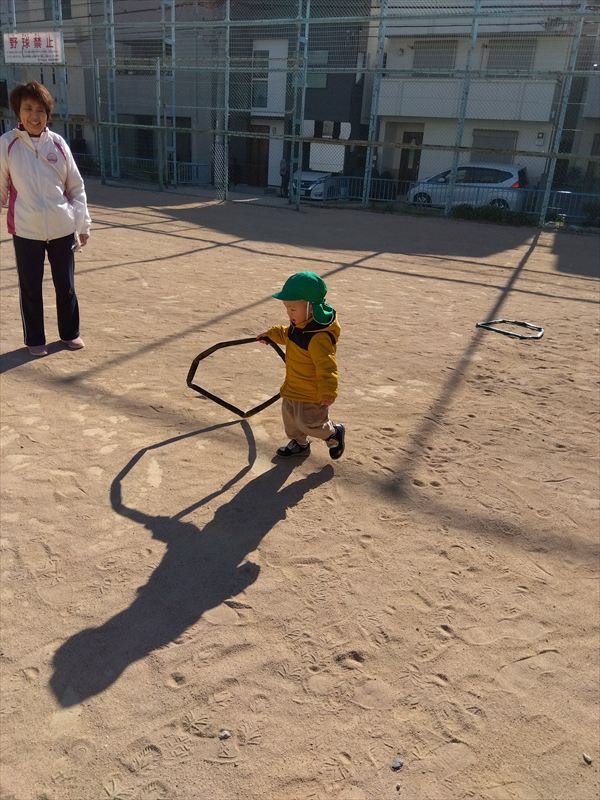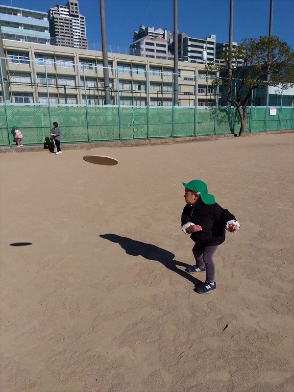 散歩が大好きな子どもが多く、ほぼ毎日「今日はお外行くの?」と聞かれます。先生や友だちと一緒に鬼ごっこをするのが最近のブームです♪