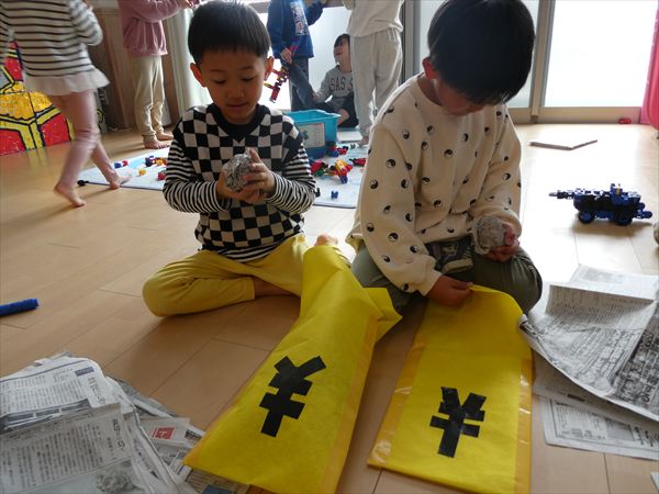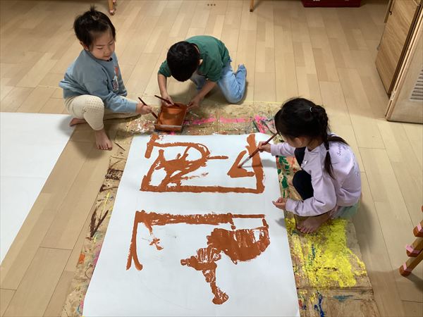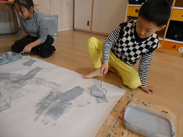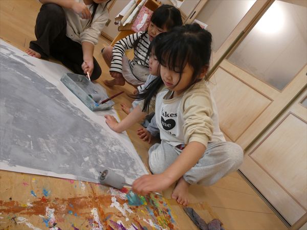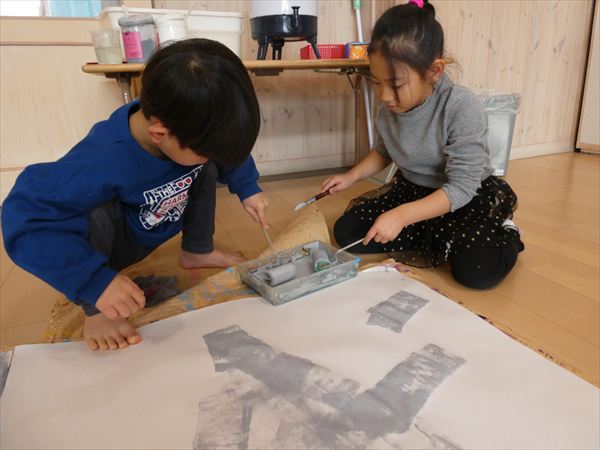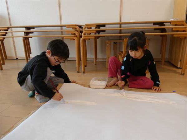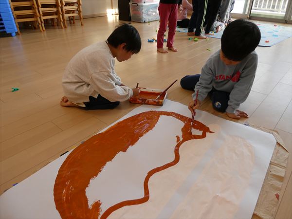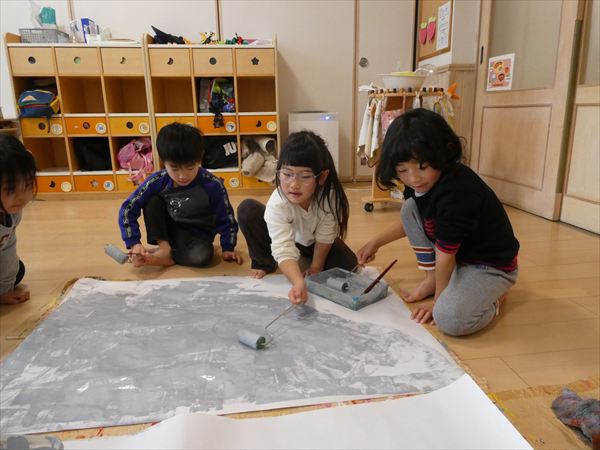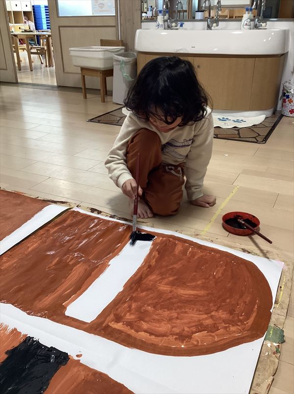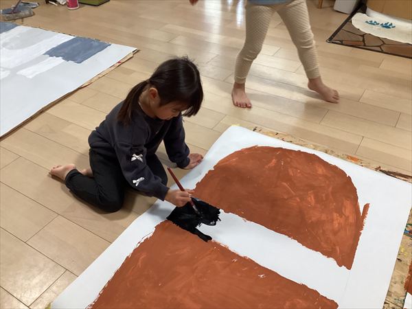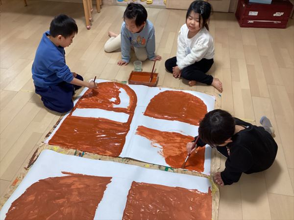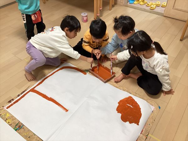 生活発表会に向けて練習を頑張っています!劇で使う大道具も自分たちで色を塗って作っていますよ☆