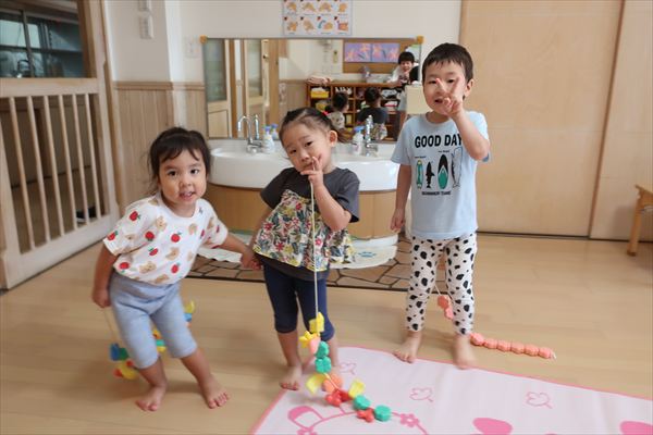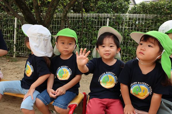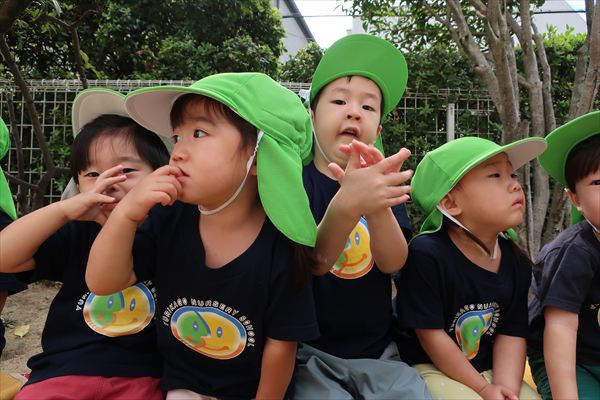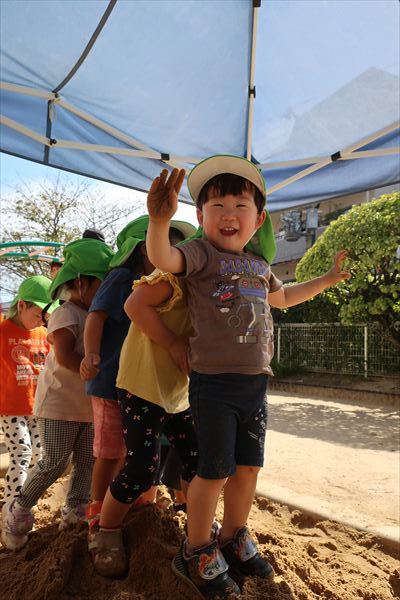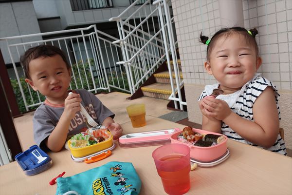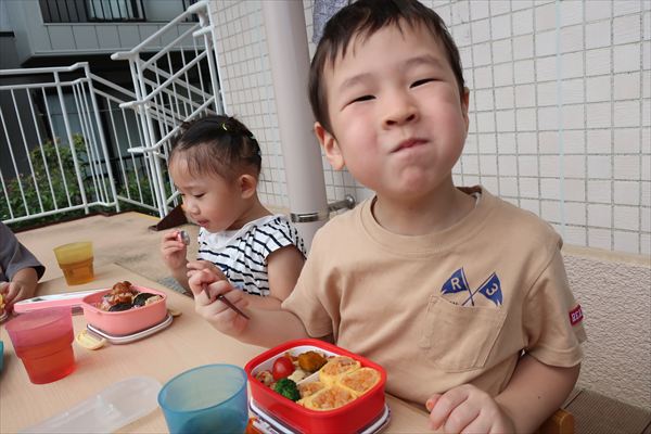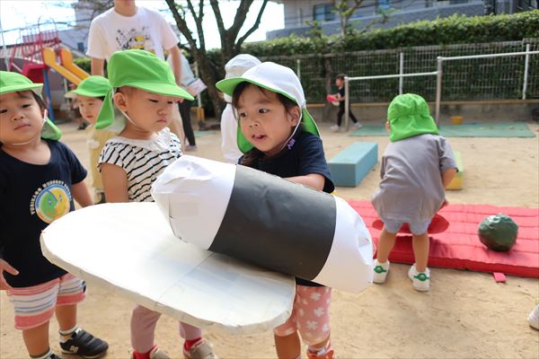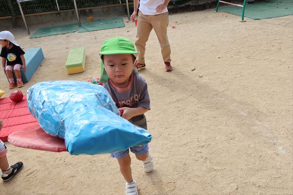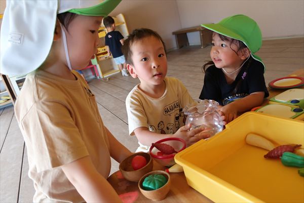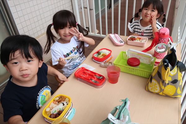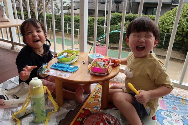 運動会が終わり、してみたかったほし組の親子競技「給食大好き」ごっこあそびをしました!この日はお家の人が作ってくれたお弁当をテラスに出て食べたよ(^^)/