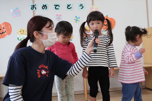 3歳のお誕生日おめでとう!大勢の前で、インタビューに答えてかっこよかったです!給食はママと一緒に食べました。