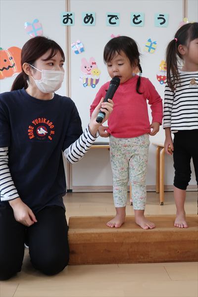 3歳のお誕生日おめでとう!大勢の前で、インタビューに答えてかっこよかったです!給食はママと一緒に食べました。