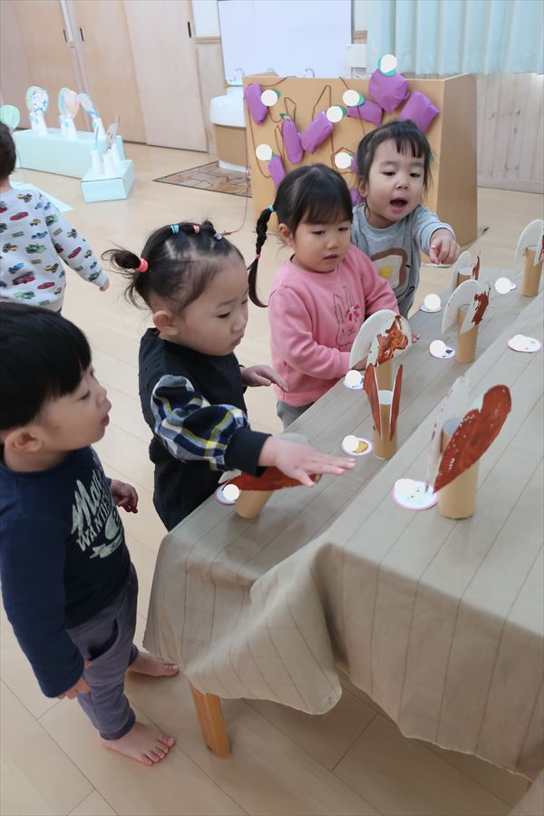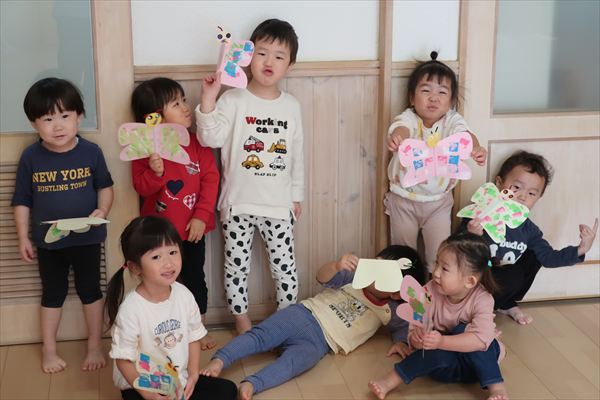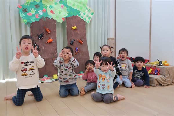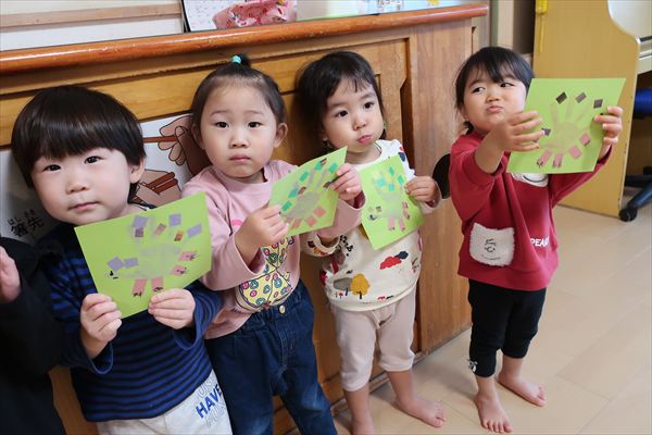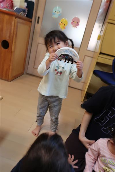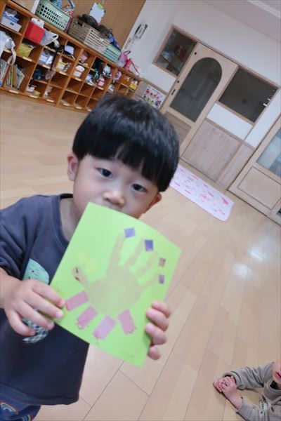 ひかり組は「虫」をテーマに制作しました!感謝祭カードは大好きなお家の人に「いつも、ありがとう!」の気持ちを込めて恐竜を手の平アートしました!すてきにできたよ!