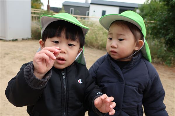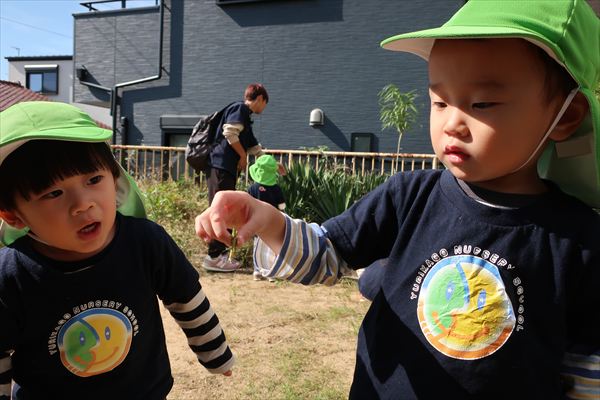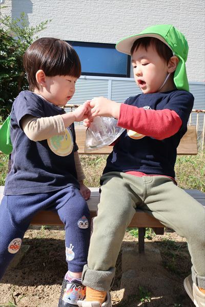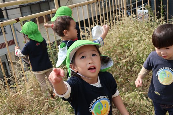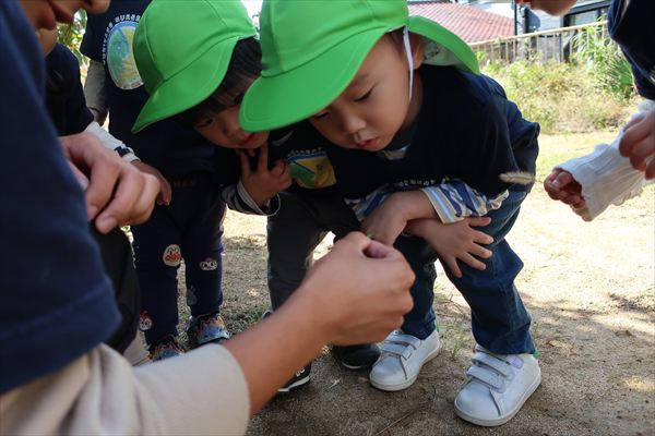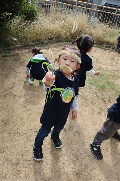 ★近くの氷室公園に散歩に行きました!ぽかぽか陽気の中で、珍しいハサミムシを発見!!猫じゃらしであそんだり、たくさんトンボに「こんにちはー!」と、あいさつしたりして秋を味わいました(^^)/また、行こうね!