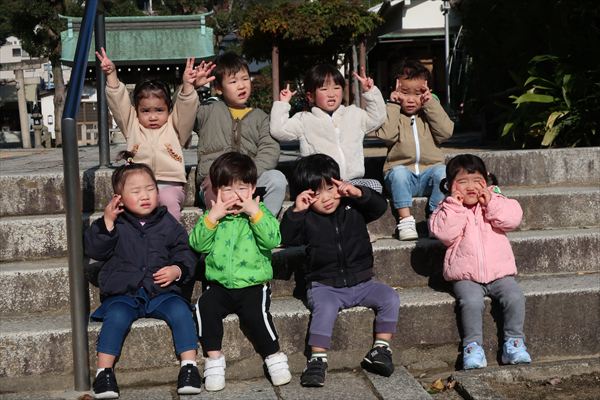 11月下旬に熊野神社に散歩に行きました。寒さに負けず園庭で元気いっぱいにあそんでいます!