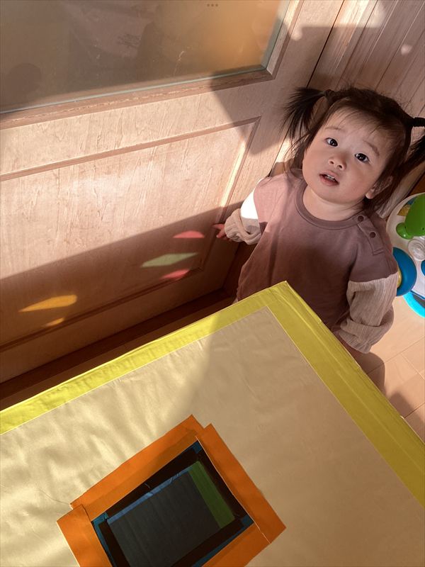 ☆トンネルの天井に貼ったカラ-フィルムに日光が当たると自然の光ができて「あか、あお、きいろ」と色がわかるようになりました。