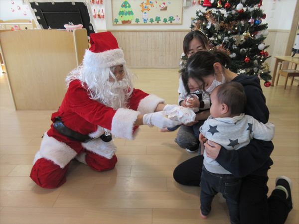 サンタさんが来てくれて、始めはちょっとビックリしたけど、サンタさんがプレゼントをくれてとっても嬉しかったよ(*^^*)