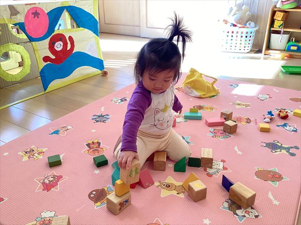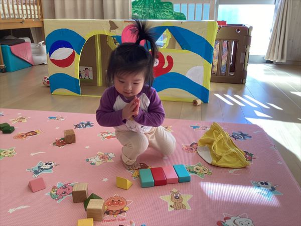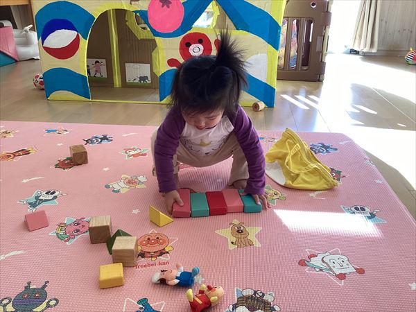 ☆色の積み木をきれいに並べています。できた!!!
