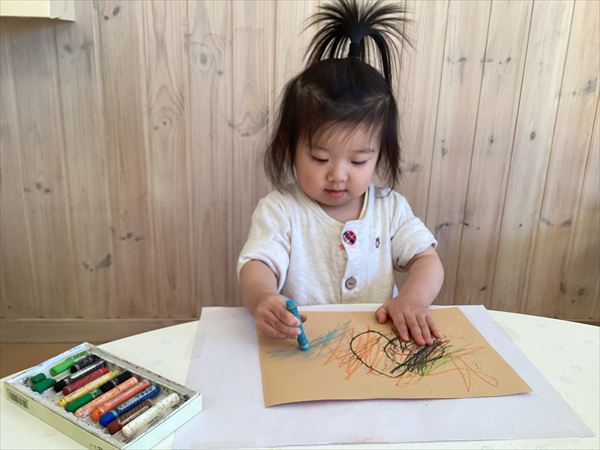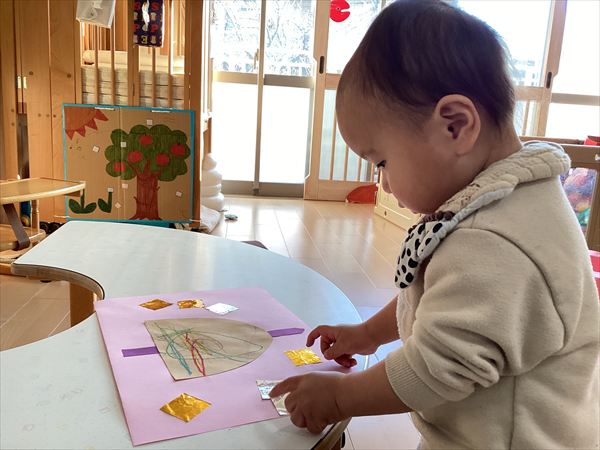 ☆お絵描きも、のりを使って色紙を貼りつけるのも集中して楽しんでいます。
