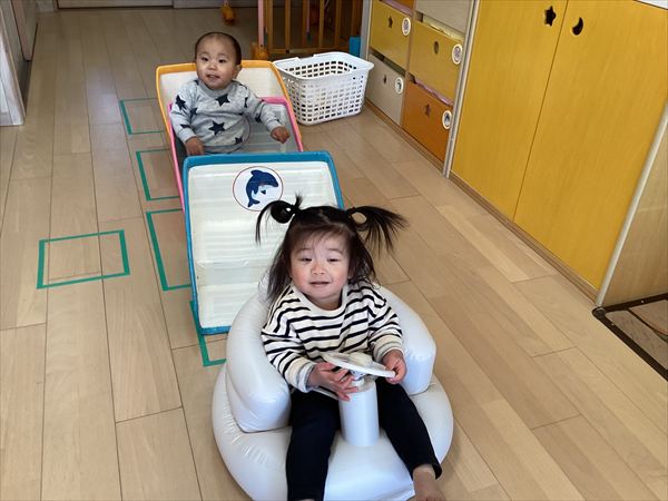 ☆バスごっこ「右に曲がりま~す」