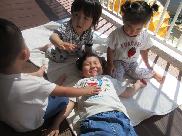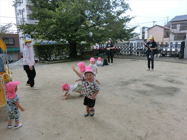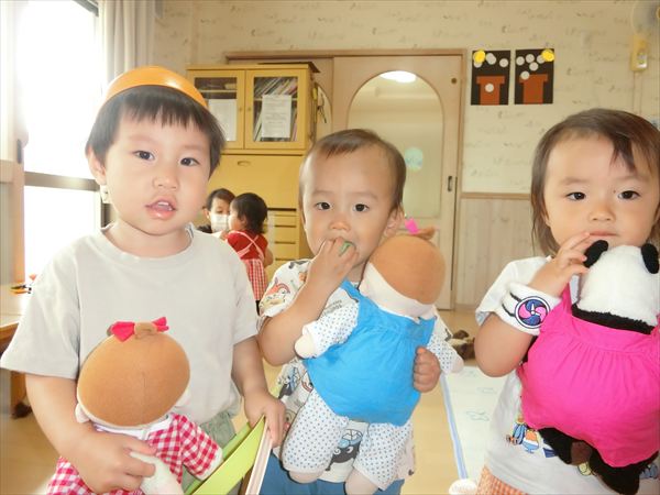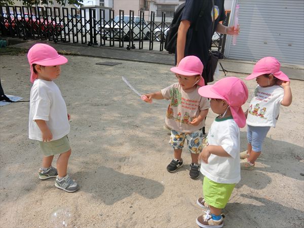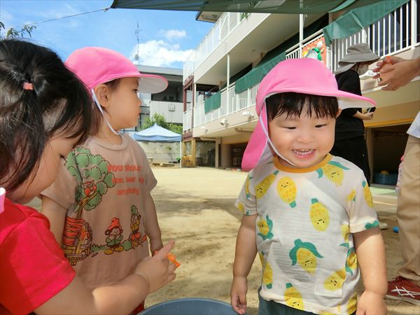 9月のそよかぜぐみ VOL.313(2025/10/1更新) 【室内遊び】 新聞遊びやままごと遊び、シール貼りをしたりして楽しみました! 【おやつ】 みんな大好きおやつの時間!(^^)!おかわりも喜んで食べていました! 【戸外遊び】 靴下も少しずつ自分で履く練習をしています。戸外では水遊びやままごと遊びを他楽しみました! 【お散歩】 みんなでバキーに乗って熊野神社へお散歩に行きました。車やバスを見たりシャボン玉をしたりしました(⌒∇⌒)