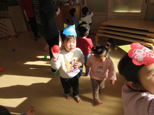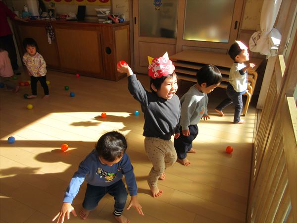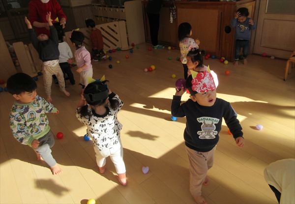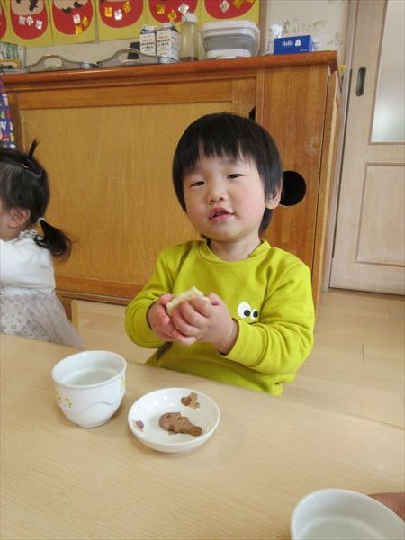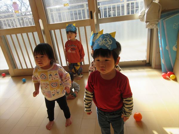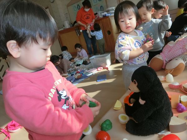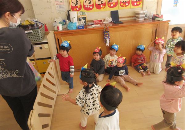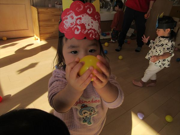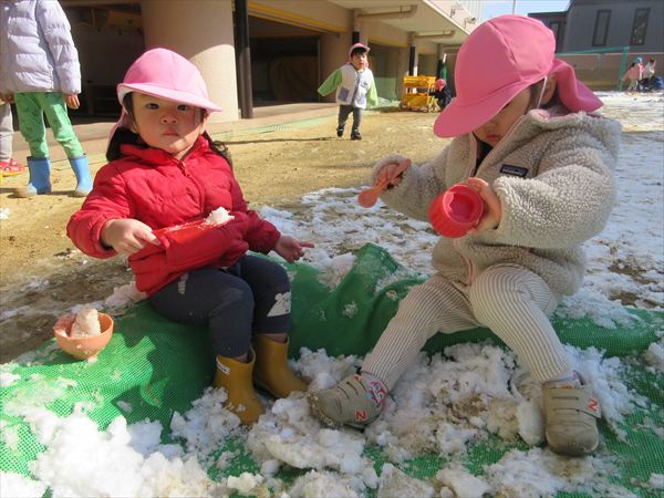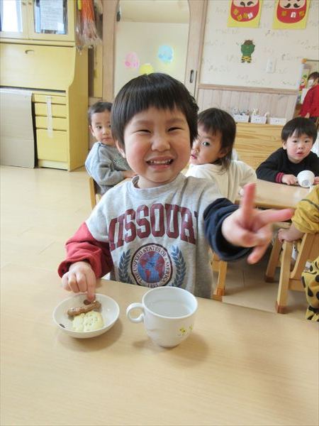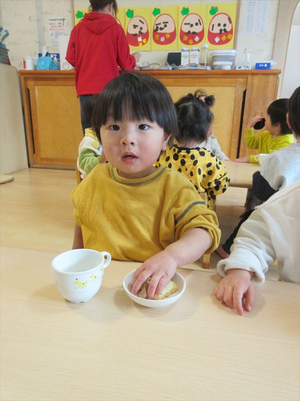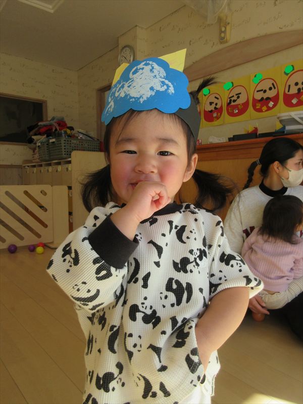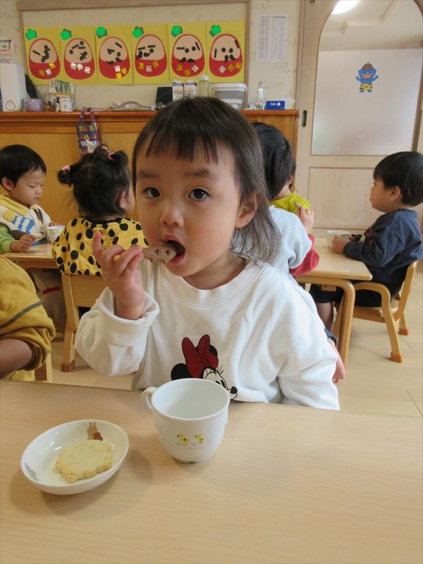 2月のそよかぜぐみ VOL.318(2026/3/1更新) 【室内遊び】 おままごとや節分の豆まきごっこをしました(^▽^)/ 【戸外遊び】 積もった雪で雪遊びをしました。雪の冷たさを感じながら雪だるまを作ったり触ったりして楽しんでいました♪ 【おやつ】 この日のおやつは節分クッキー。「おにさん!」と言いながら嬉しそうに食べていました☆