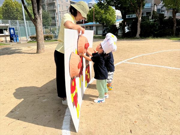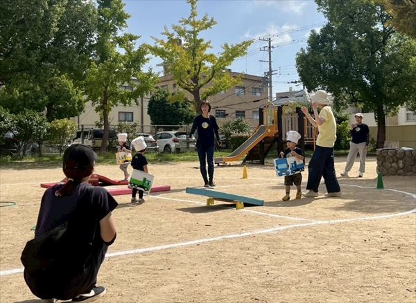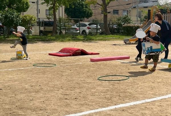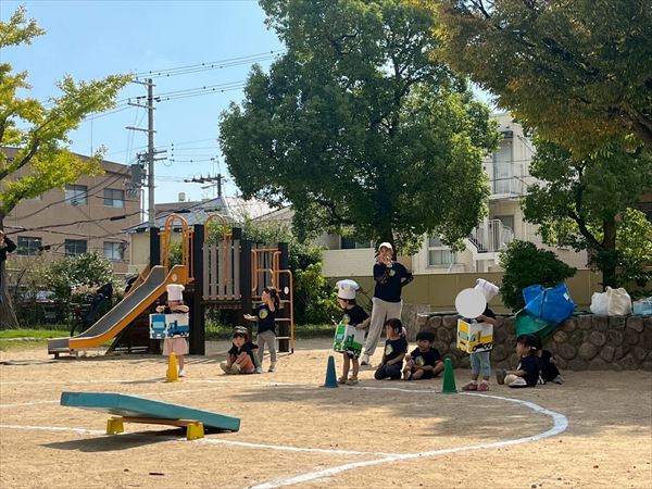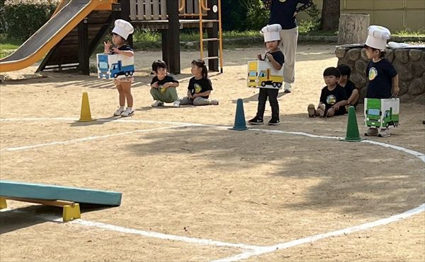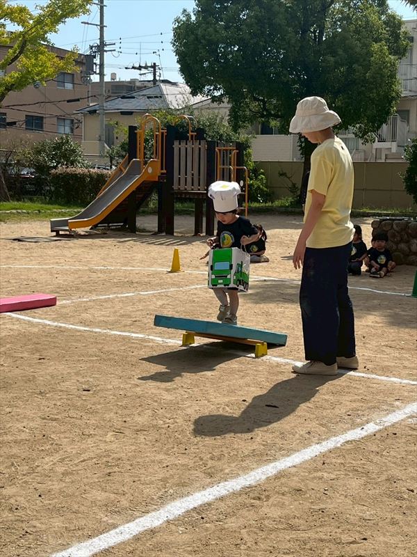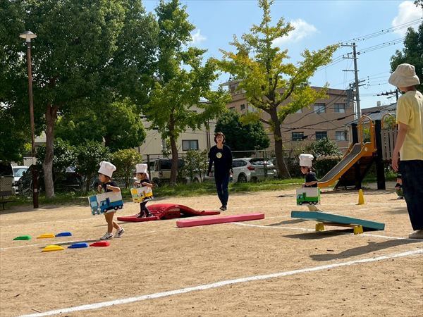 公園で本番と同じように運動会の練習をしました(*^^*)お部屋との距離感が違うので少し戸惑ったりもしましたが、子どもたちはのびのびと動いていました(^^)