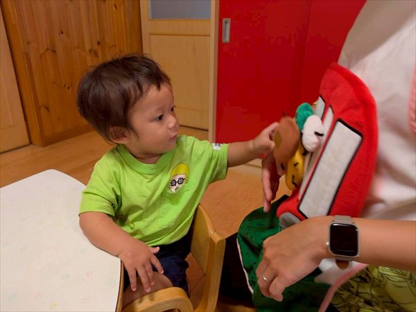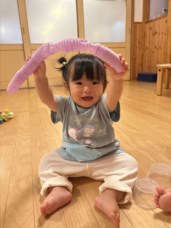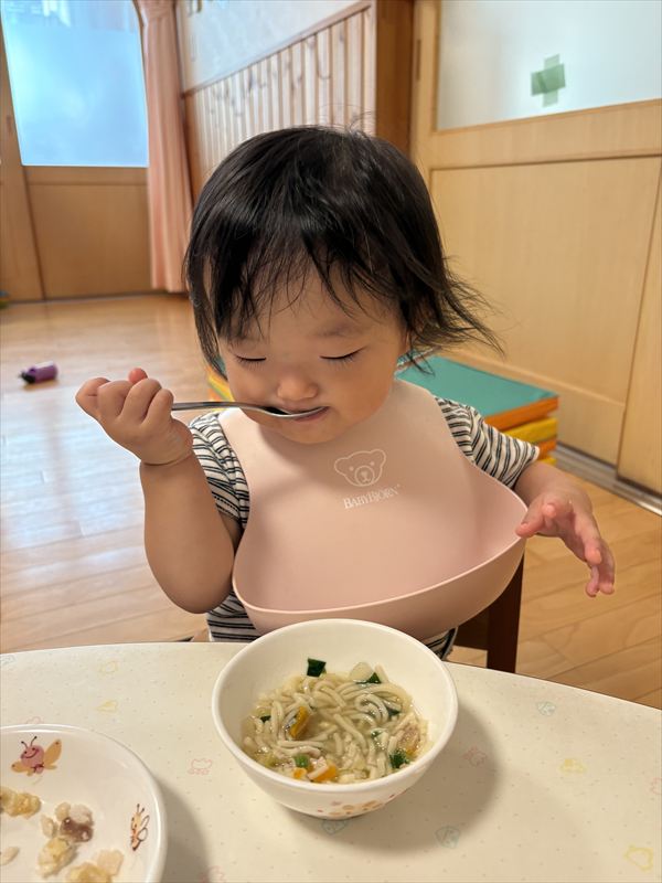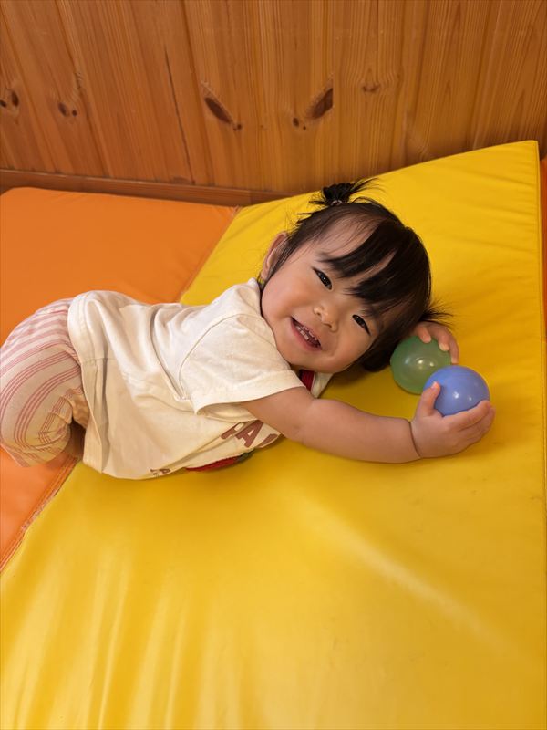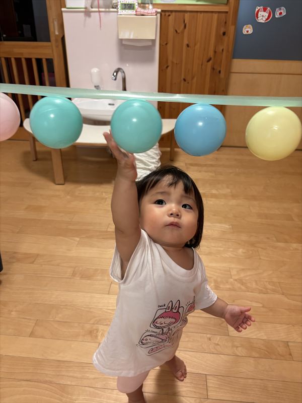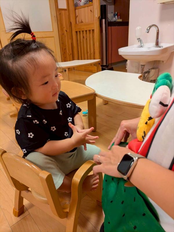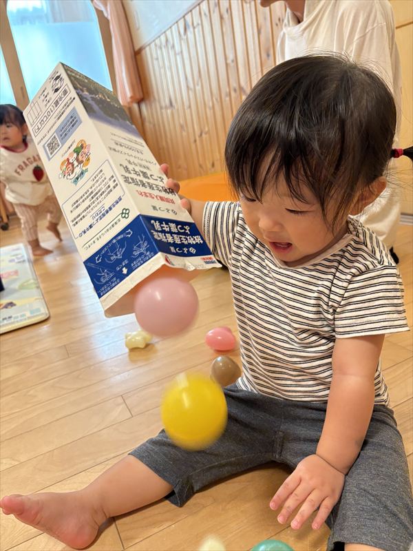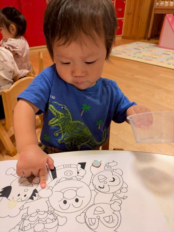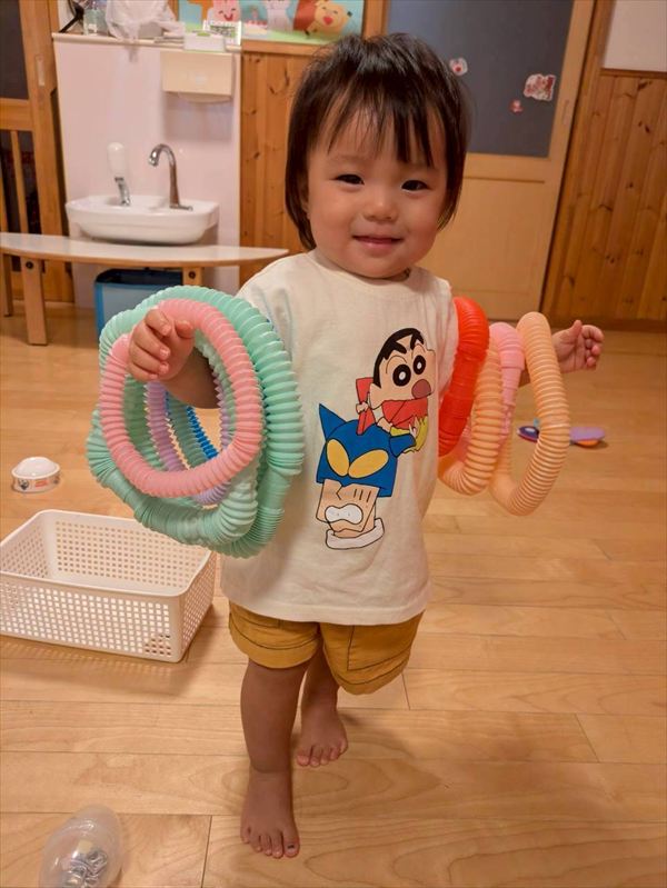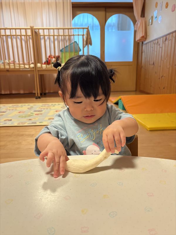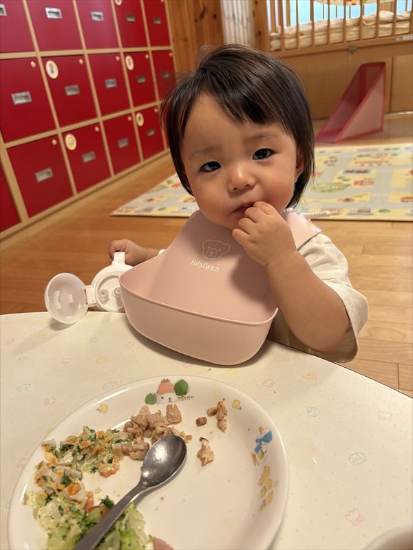9月のおひさまぐみ VOL.138(2025/10/1更新) 【外遊び】 お外が大好きな子どもたち!いっぱい体を動かして元気いっぱいです 【感触遊び】 片栗粉や小麦粉を使いスライムを作り遊びました!トロトロしたりモチモチしたりする不思議な感触に興味津々な子どもたちでした 【給食の時間】 離乳食や普通食をモリモリ食べて楽しい給食の時間を過ごしています 【室内遊び】 室内では好きなおもちゃを見つけたりシール貼りやエプロンシアターなど様々な遊びを楽しみました