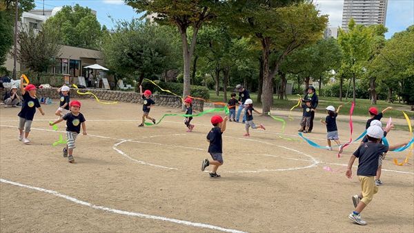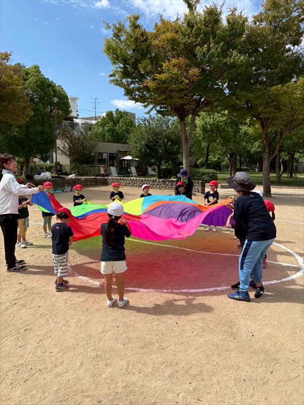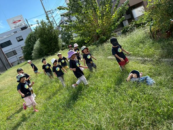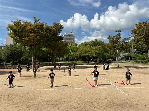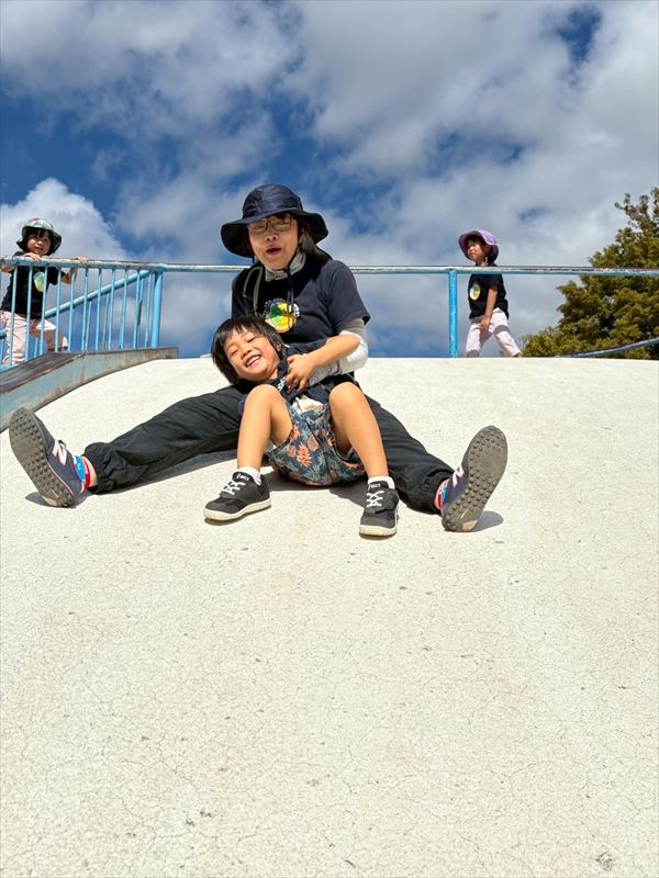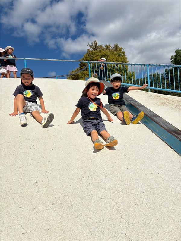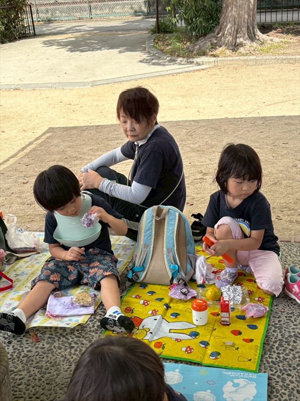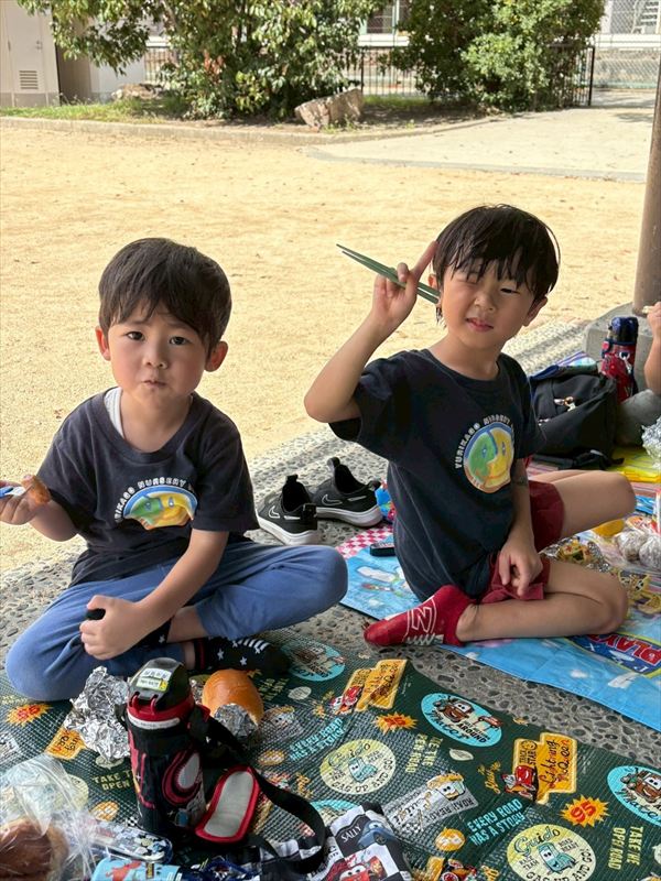 運動会を終え、早速ピクニックをしに岩屋公園へ!久しぶりの遠出に子どもたちも大喜びでした!公園を一周して散策したり、虫探しもしたりと思う存分楽しみました!外で食べるおにぎり弁当はまたいつもより一段と美味しかったね