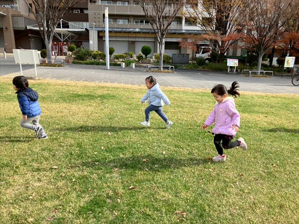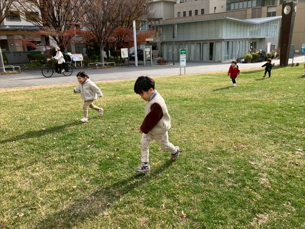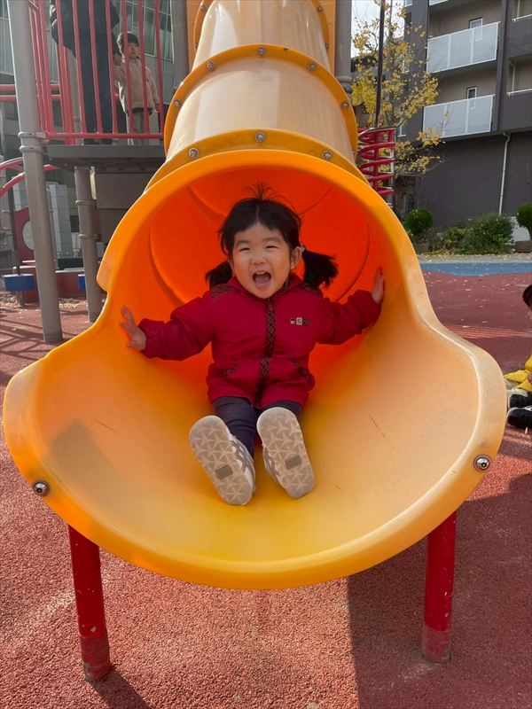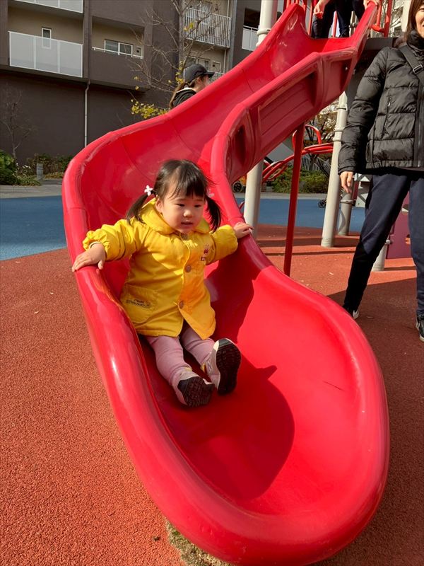 初めて南公園に遊びに行きました(^^)/坂道や芝生を走ったり、遊具の滑り台で滑ったりとみんなでたくさん遊んでいます☆