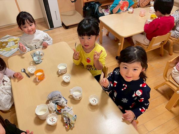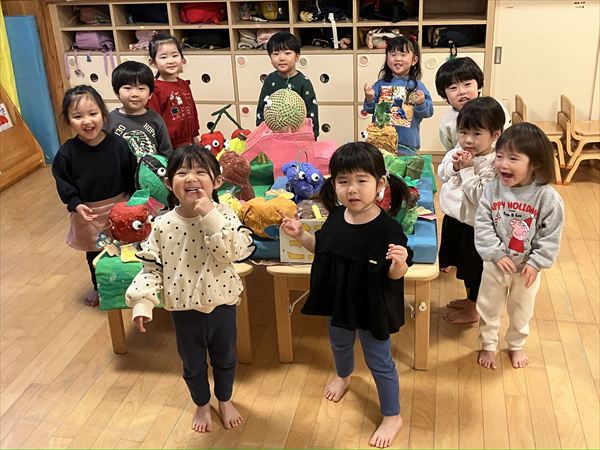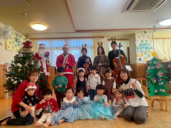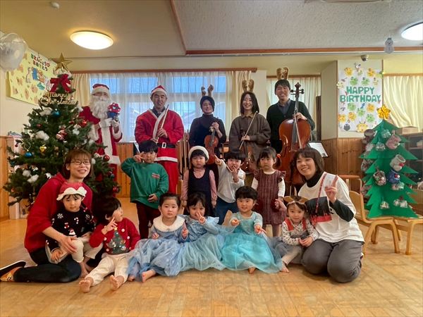 サンタさんやトナカイさんたちがきて楽器の演奏をしてくれました♪みんなが楽しみにしていたクリスマスプレゼントももらえて遊ぶのが待ち遠しそうな様子の子どもたちです(^^)