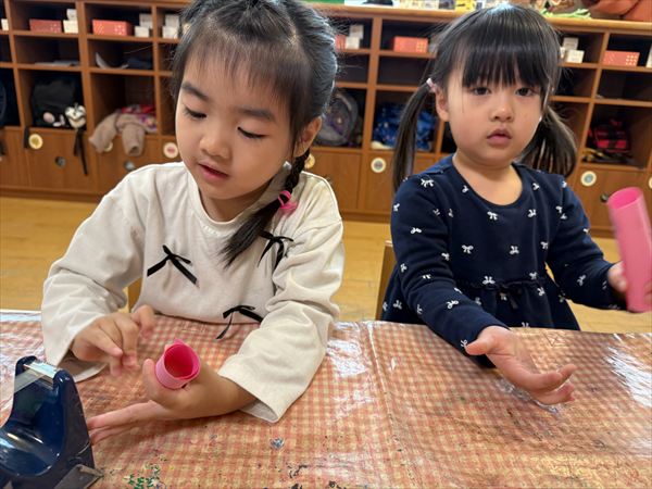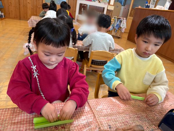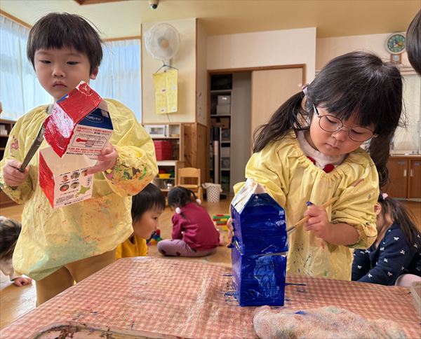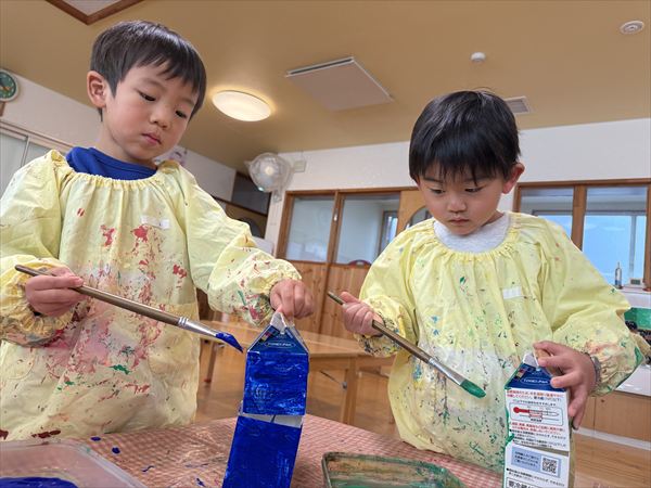 節分に向けて制作をしました!恵方巻の制作はお寿司屋さんになりきりながら制作を進めて楽しみました☆鬼も絵の具の色を自分で決めて牛乳パックを色付けました!制作をじっくり楽しめるようになってきました!