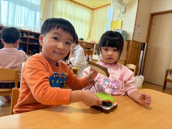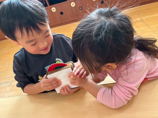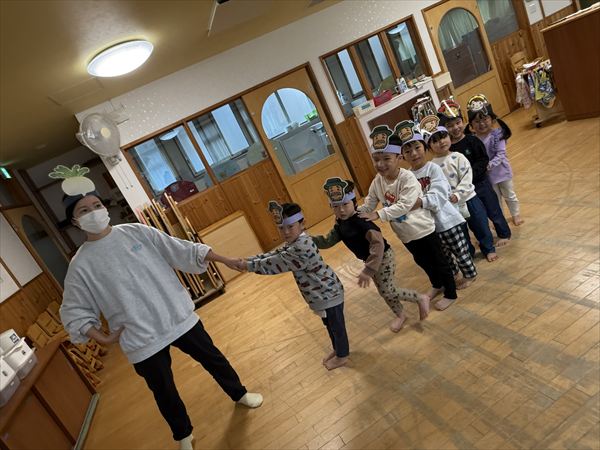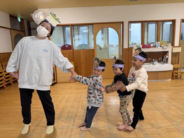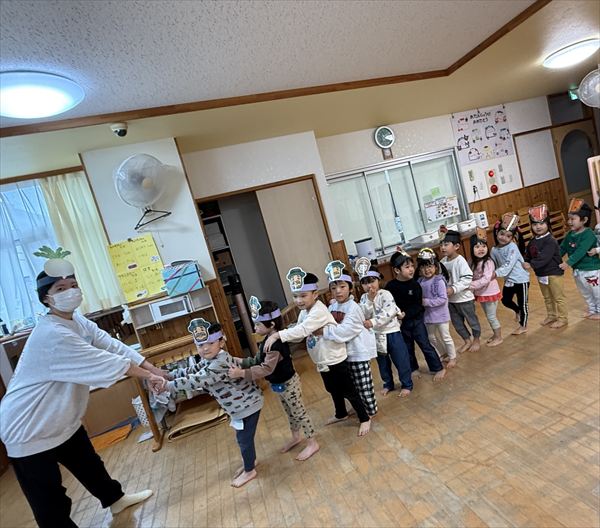 「大きなかぶ」を題材に劇遊びをしました!絵本を見ながらセリフを言ってみたことで盛り上がっていたので、自分たちが絵本と同じように動いてみることで更に理解も深まっているようでした!「うんとこしょ!どっこいしょ!」の言葉がお気に入り元気いっぱいかぶを抜こうと声を出していた星組さんでした☆
