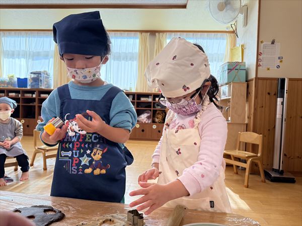 クリスマス会に向けてクッキーを作りました(^^)/月・虹組さんが作ってくれた生地を型抜きしました!クリスマスらしい型を見て「かわいい♪」とクリスマスに期待を膨らませていました(^^)