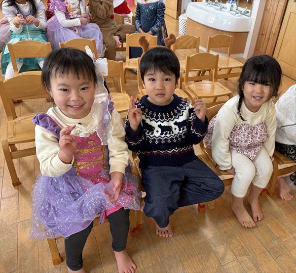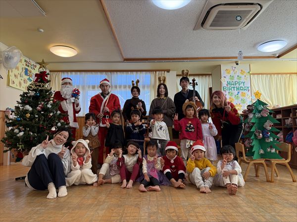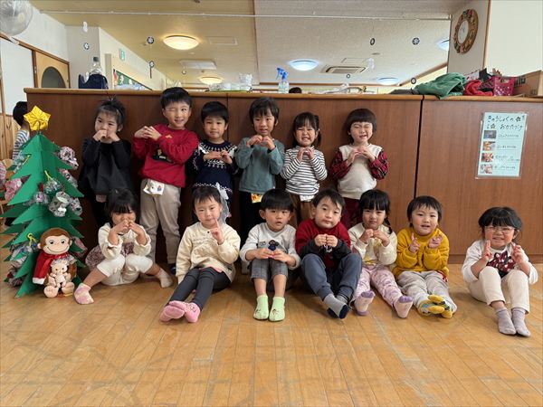 いつも以上に気合バッチリでオシャレしたクリスマス会!サンタさんの登場に大興奮!面白サンタさんだったので子どもたちは嬉しそうでした!サンタ見習いさんたちの演奏を聴いて盛り上がったり、プレゼントをもらって嬉しそうな星組さんでした☆