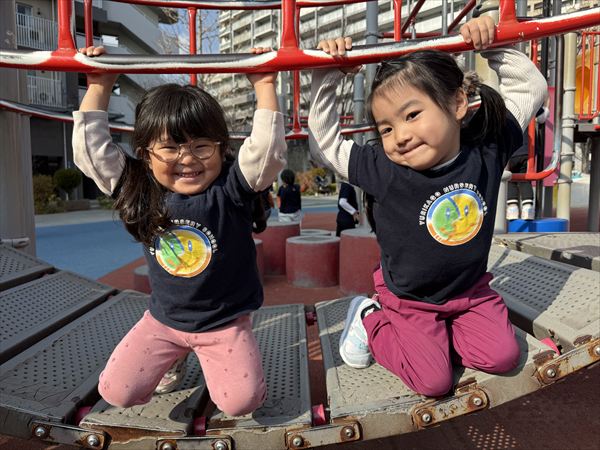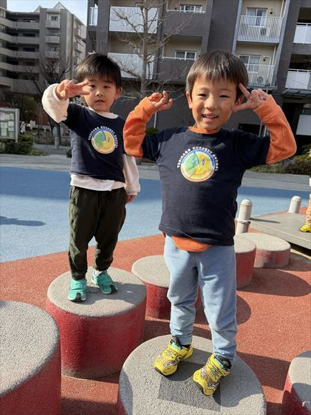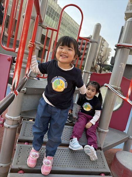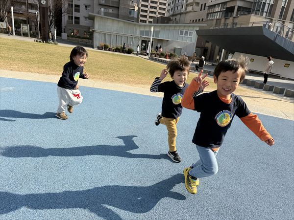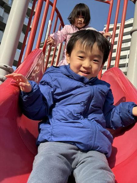 大きな遊具に喜んでたくさん身体を動かして遊んでいました(^^)登ったり下ったり走ったり・・・冬だけど汗をかくほど動いていたほしぐみさんです!