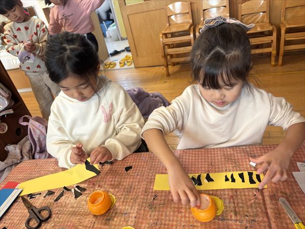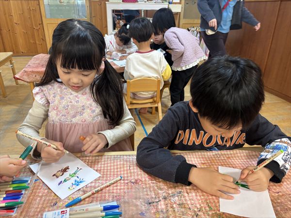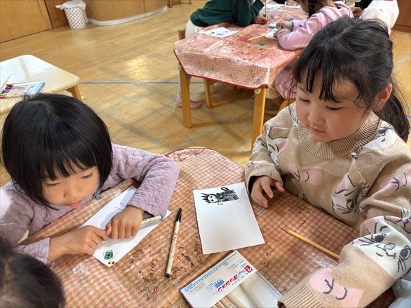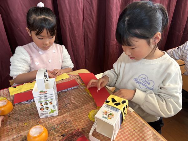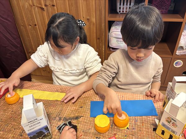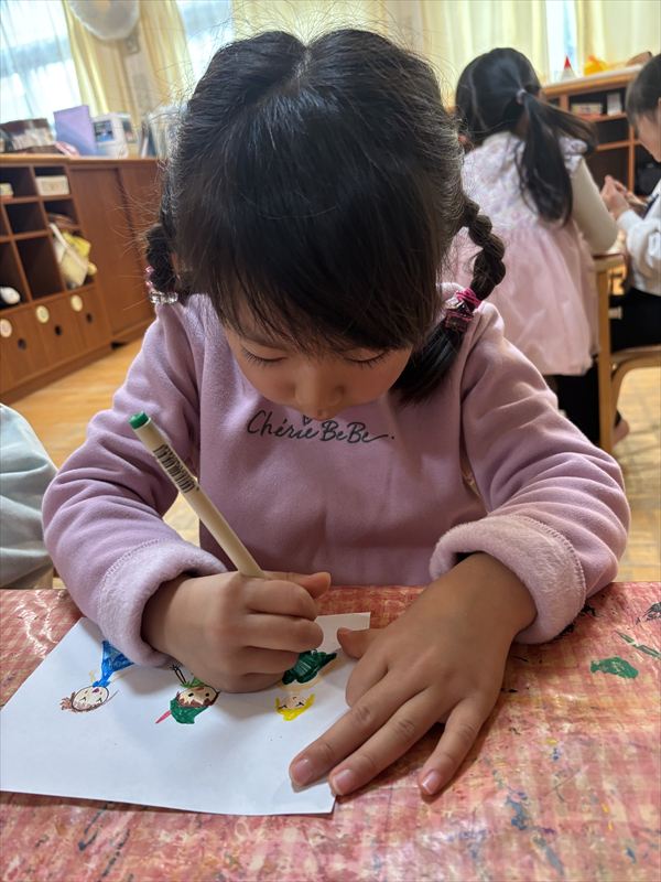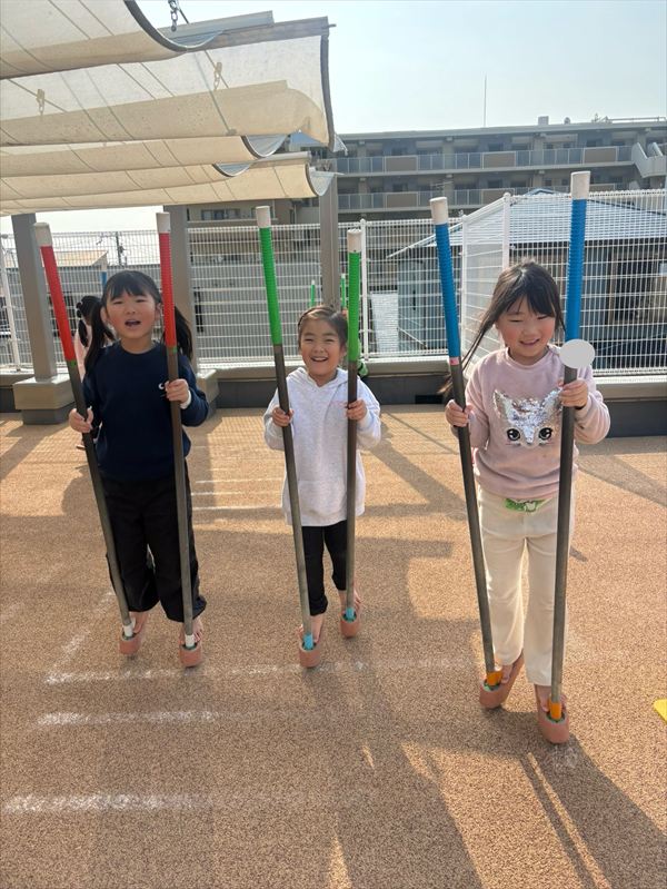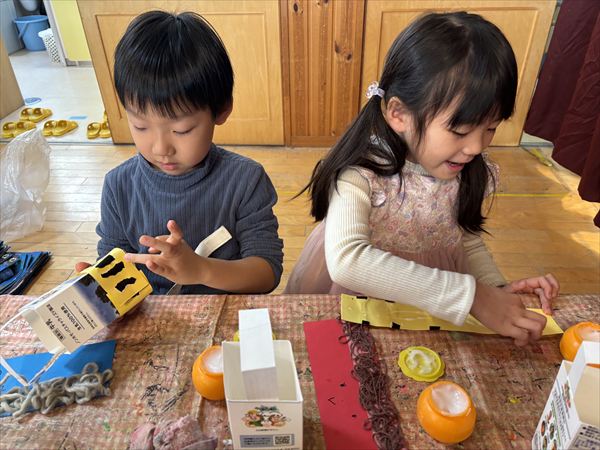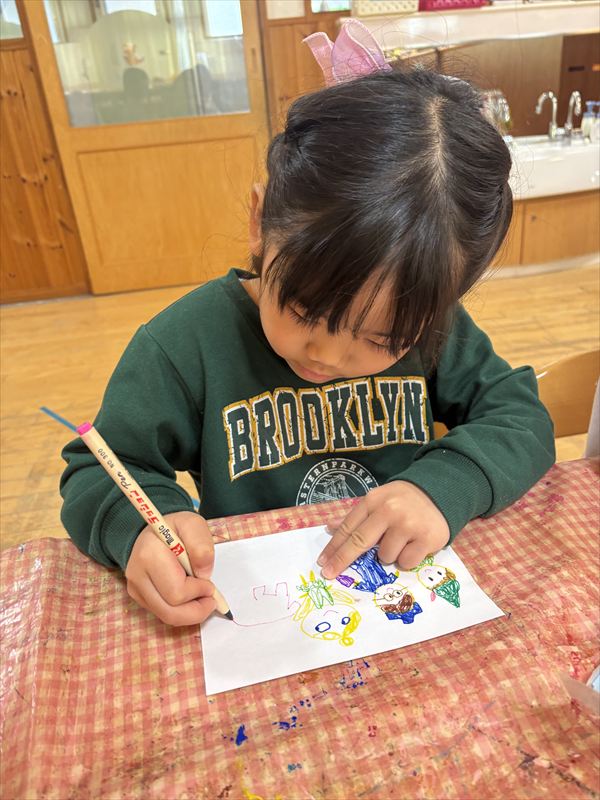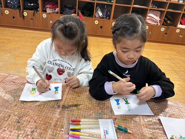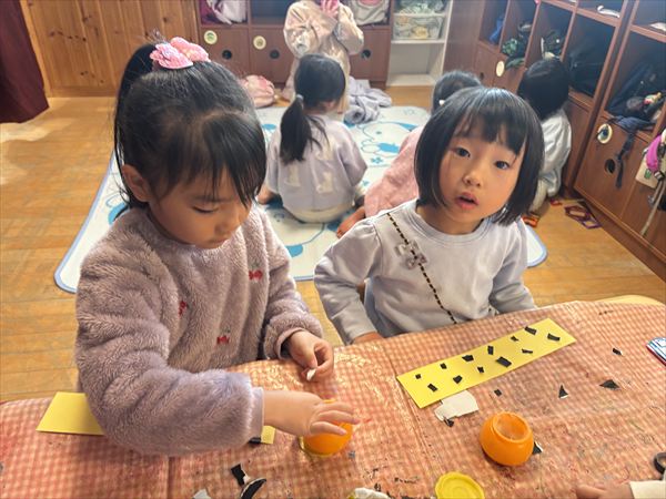 最近室内遊びではオセロやトランプ、こまが流行っています!ラキューでは女の子は特にスマホやイヤリングを作ることを楽しんでいます♪走ることが大好きな虹組さんは、外に出ると寒さに負けず元気に走り回って遊んでいます(^^)