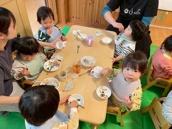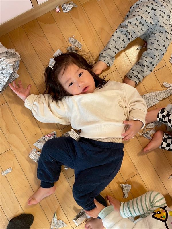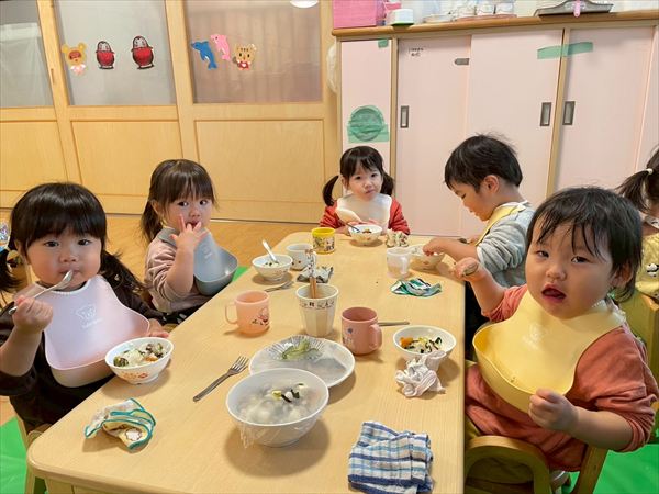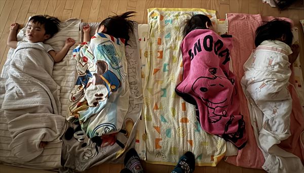 楽しく遊んだ後は待ちに待った給食を食べて、すやすやお昼寝です。