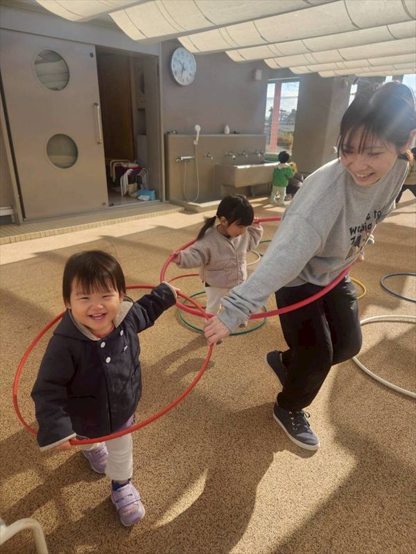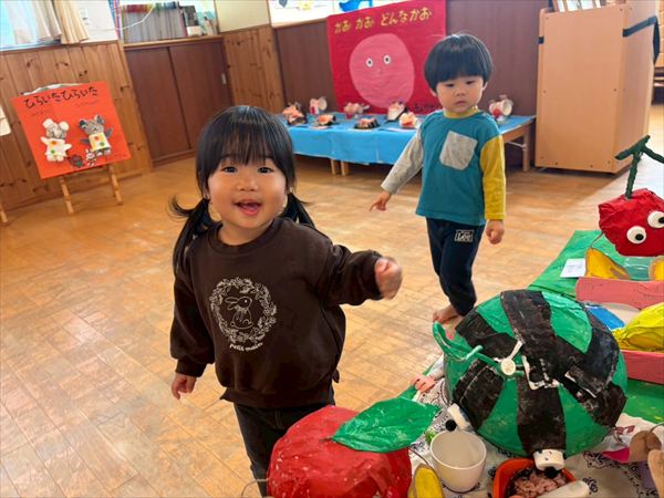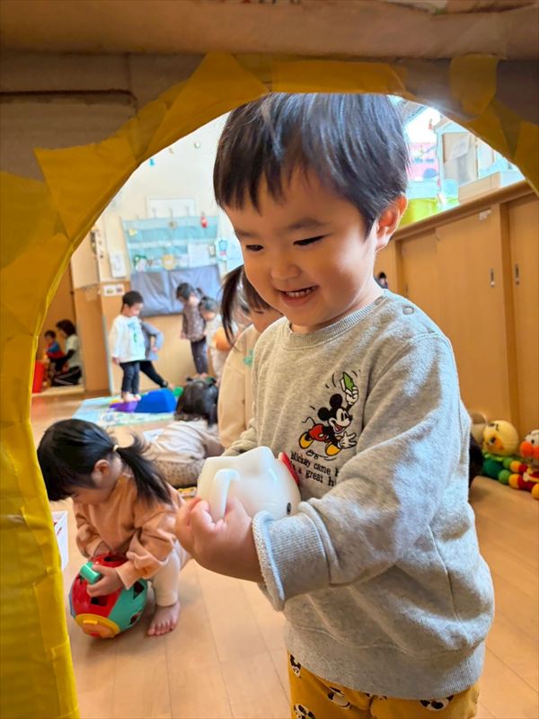 お友だちとの関わりも増え、遊び方も変わってきたように感じます。クーラにも遊びに行きました♪にこにこ笑顔がとってもかわいいですね!