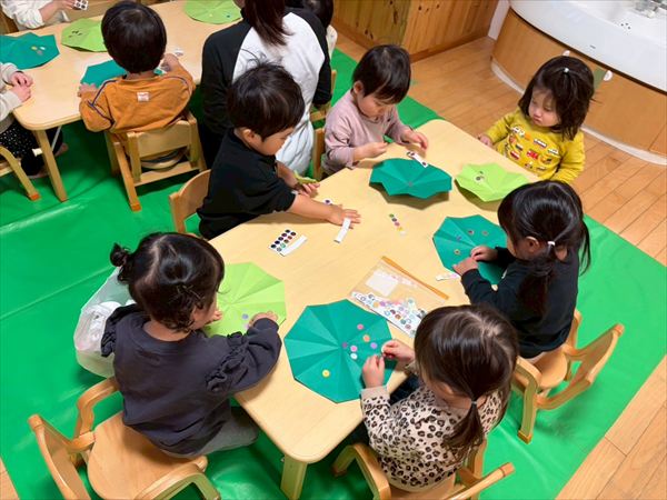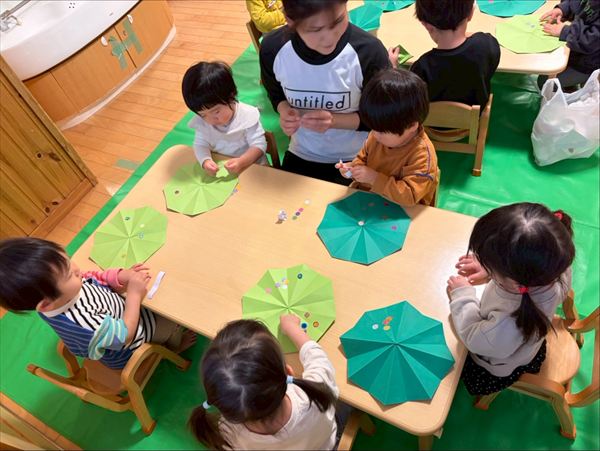 クリスマス制作でクリスマスツリーを作りました。かわいいツリーができました!クリスマス会楽しかったね(^^)