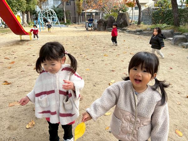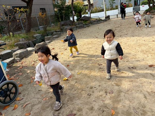 寒くなっても子どもはかぜの子なようで、戸外でも元気いっぱいでした!園庭もお散歩もたくさん遊んだね!