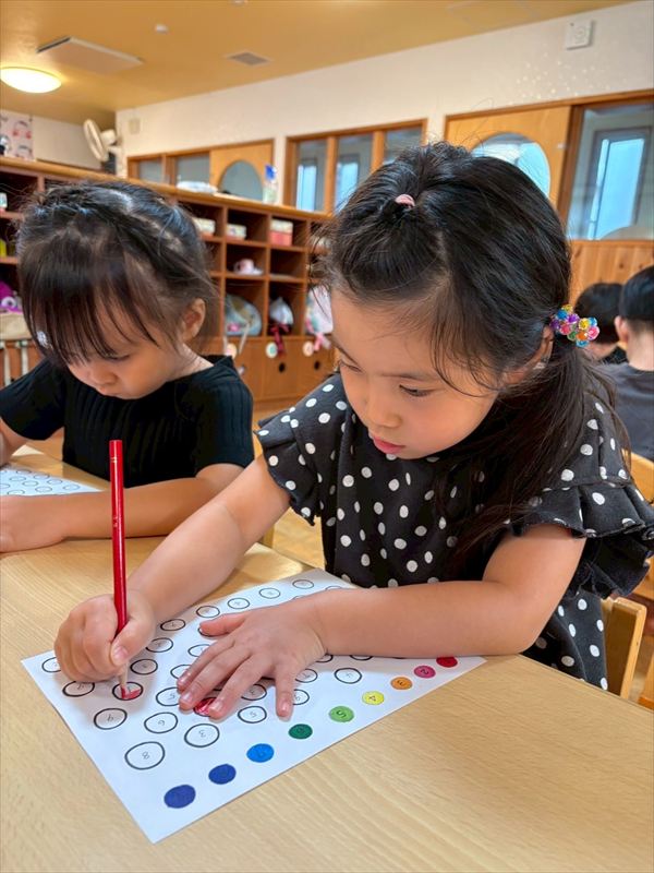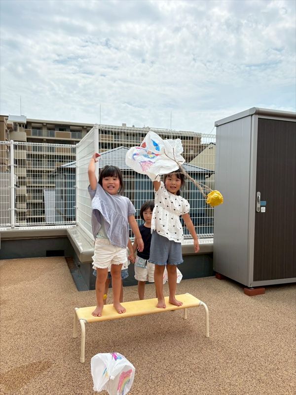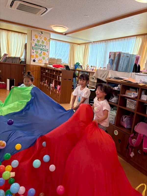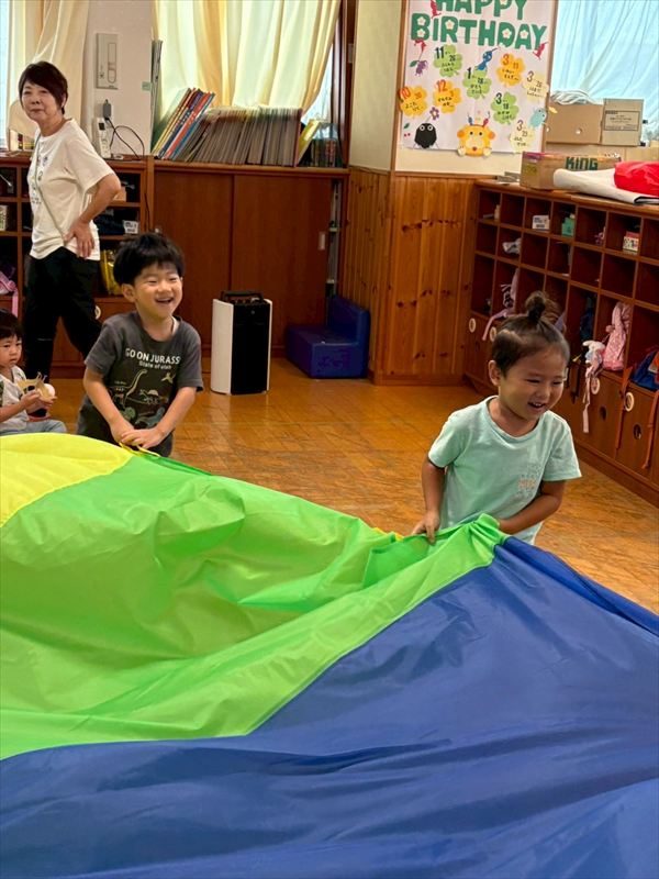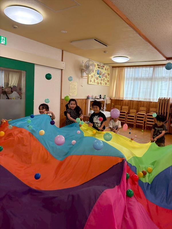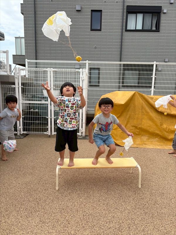 お寿司作りをしたり、パラシュートを作って皆で飛ばしに行きました!数字を覚えられるように数字遊びにも挑戦してみました!!